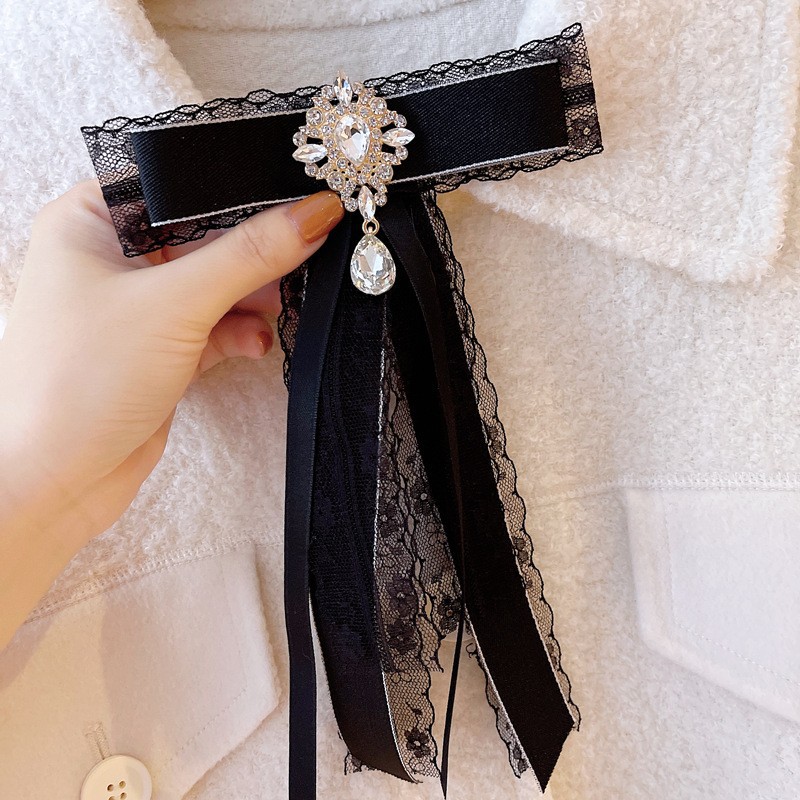 ¥17.85学院风黑色蕾丝领结胸针精致蝴蝶结水钻飘带领花少女复古英伦配饰销量0 -