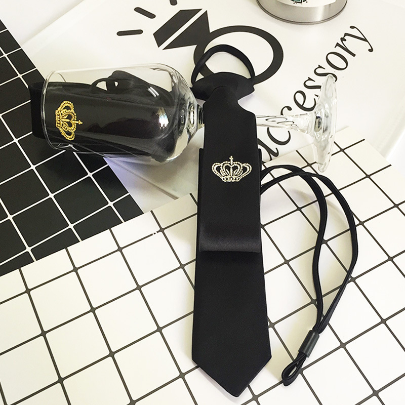 ¥16.40时尚潮流新款男士小领带皇冠刺绣发型师细窄黑色5cm懒人拉链配饰销量0 -