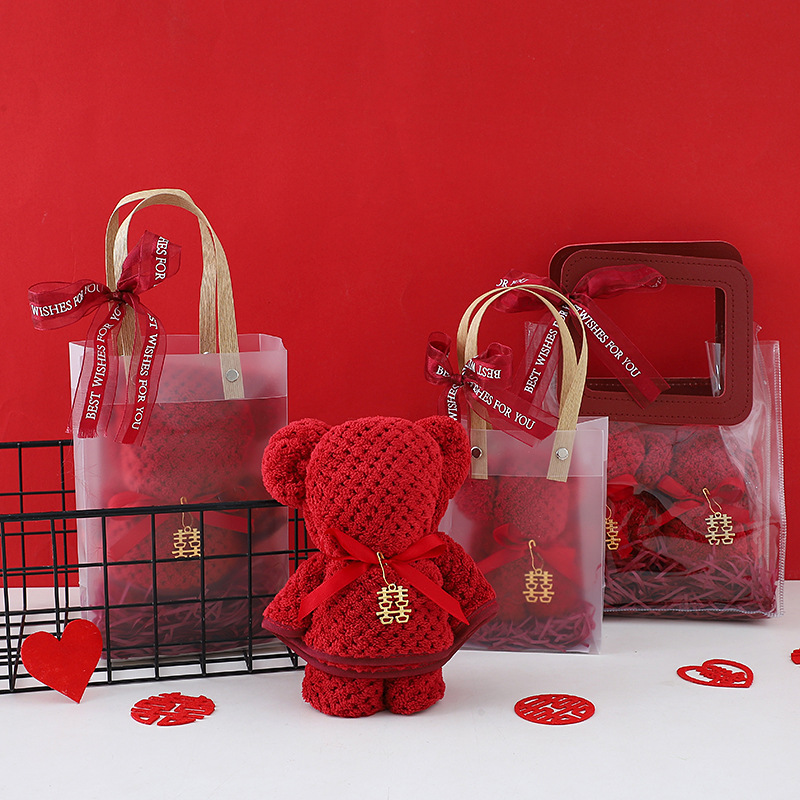 珊瑚绒创意小熊毛巾伴手礼结婚回礼喜铺礼品红毛巾礼盒厂家批发