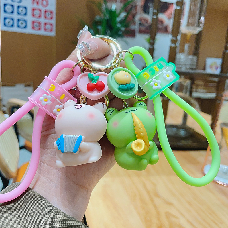 创意卡通公仔树脂音乐青蛙钥匙扣精致汽车钥匙链包包挂件礼品批发