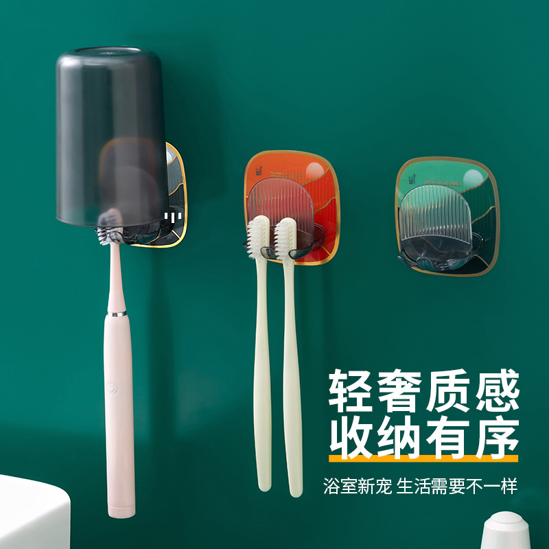 牙刷架漱口杯浴室置物架免打孔吸壁式卫生间洗漱套装轻奢牙刷套装