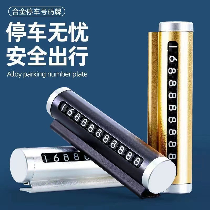 跨境汽车车载停车牌停靠挪车移车电话号码牌可隐藏金属临时停车牌 铝合金停车牌【黑色】