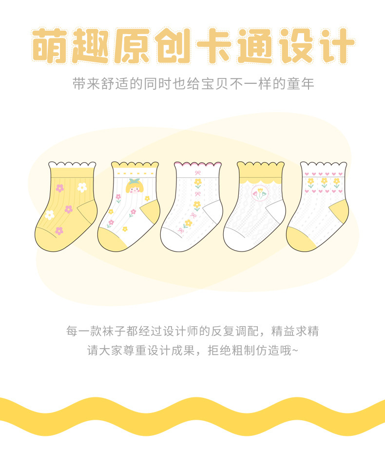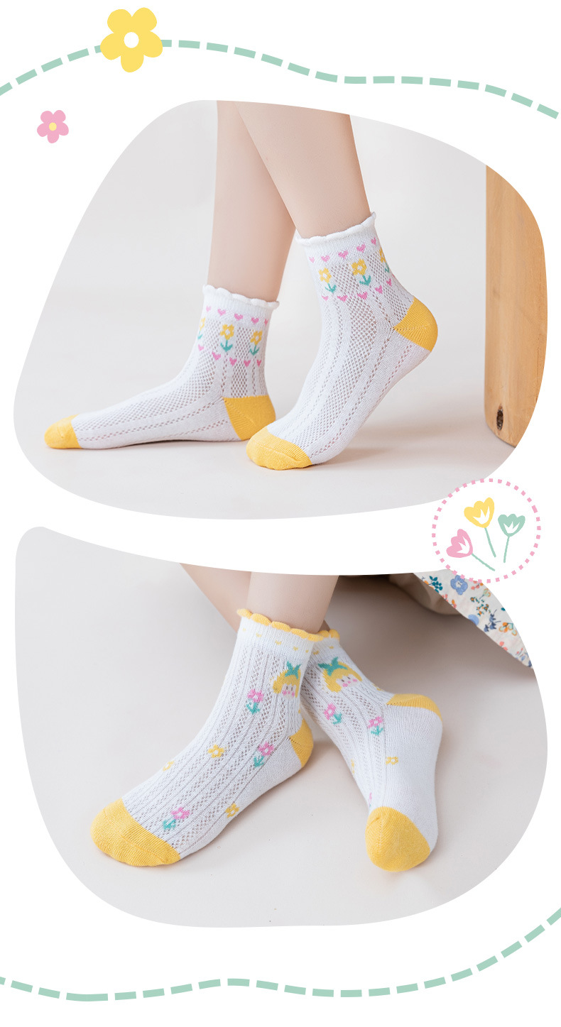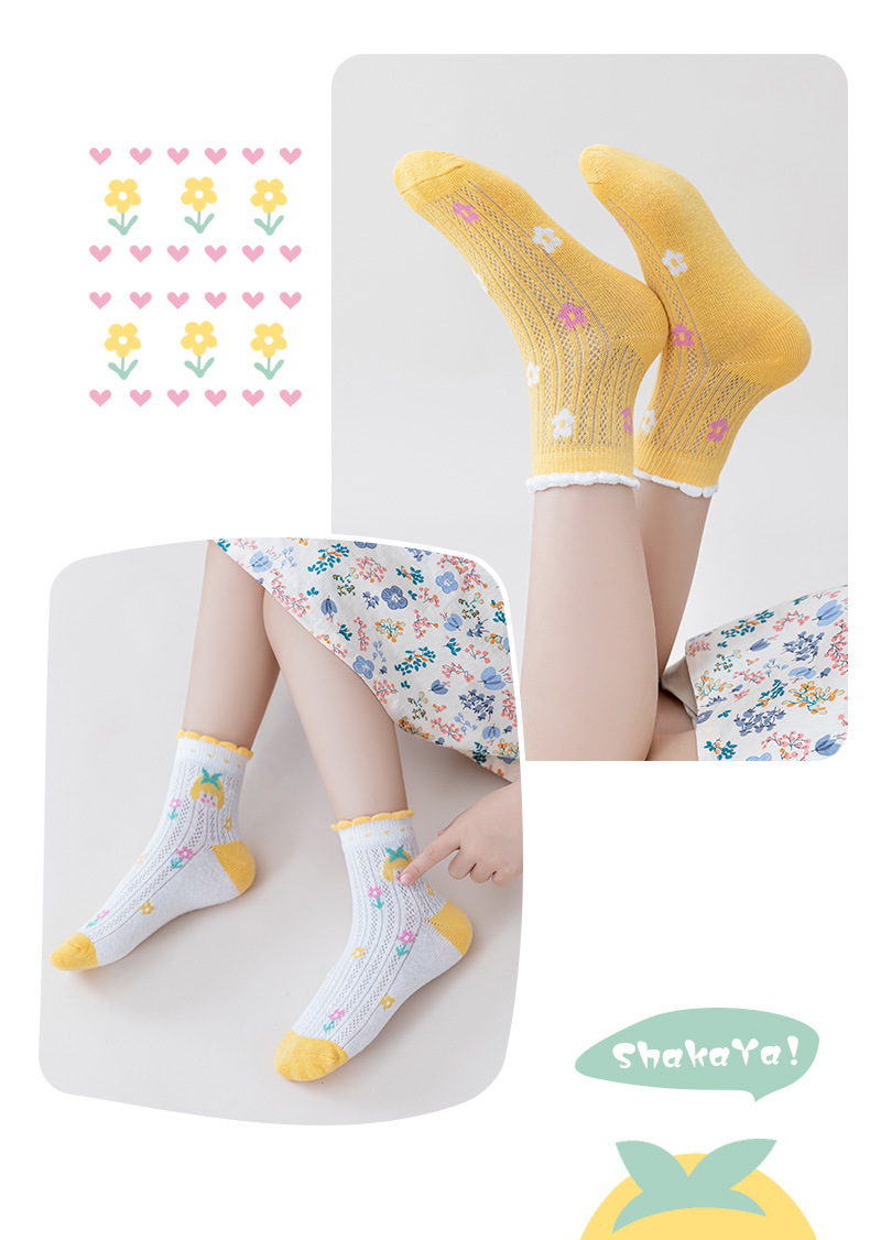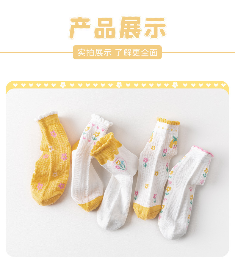 24春夏薄款黄系甜心女孩花边棉短袜可爱清新网眼小花儿童袜子批发 6579 黄系甜心女孩-S(建议1-3岁)