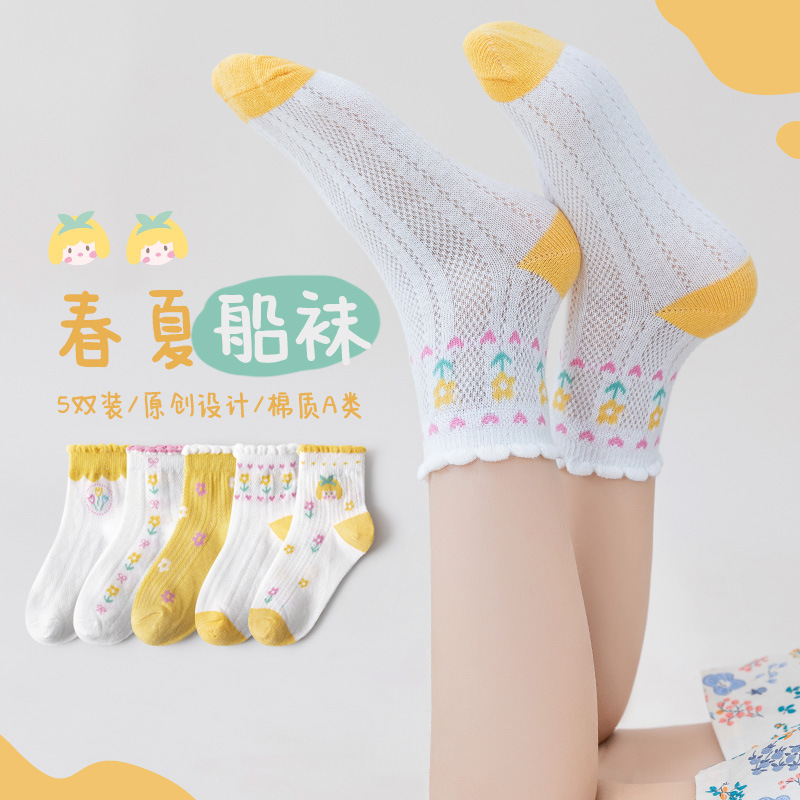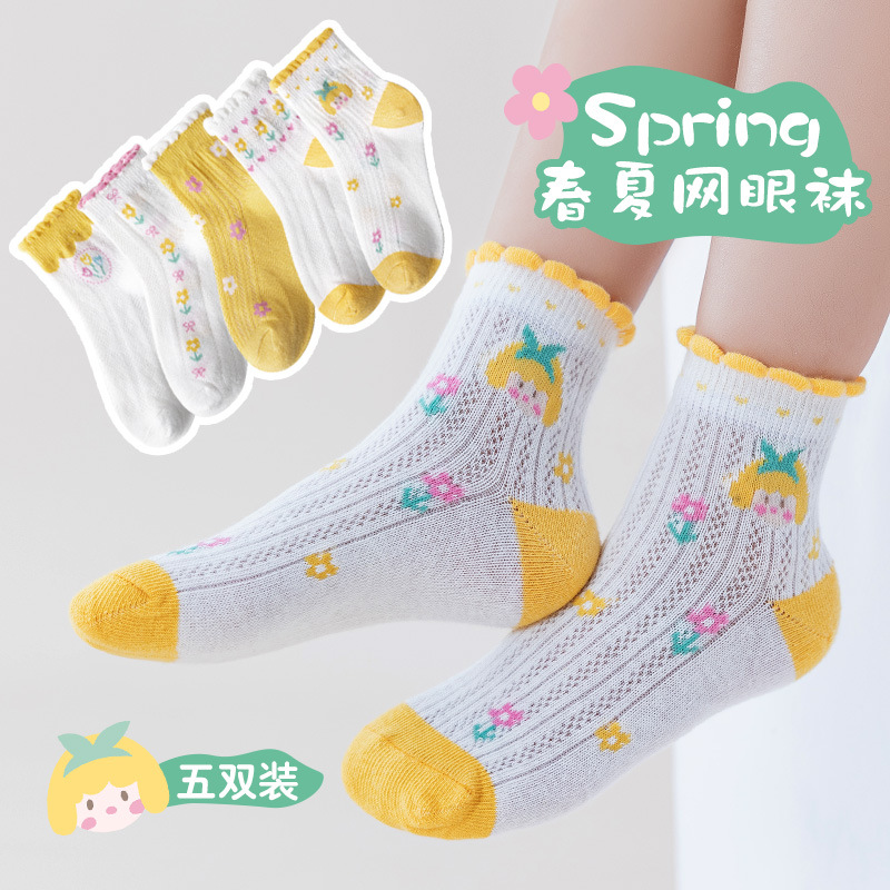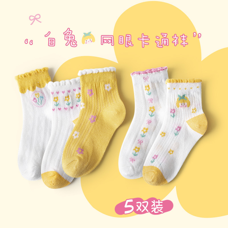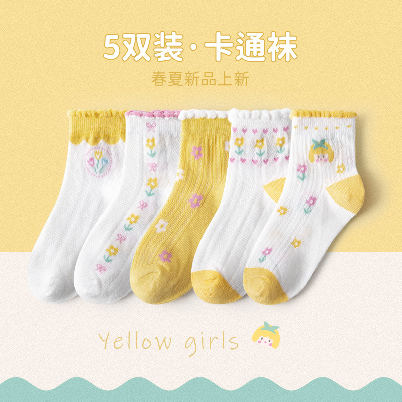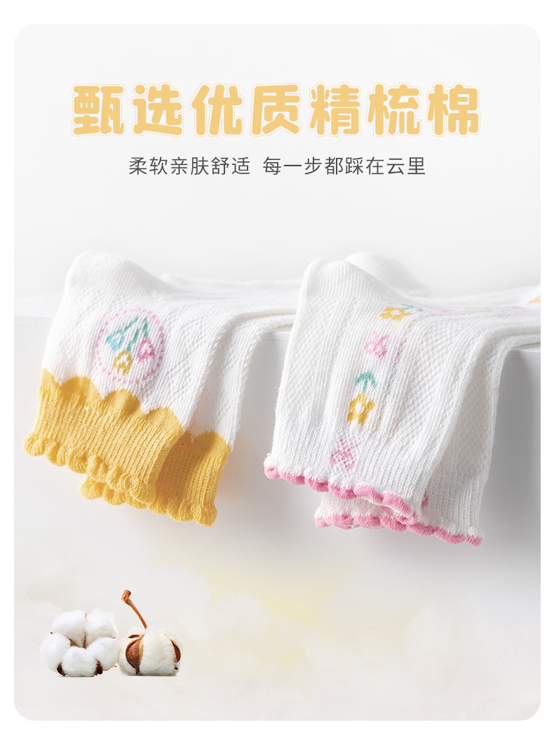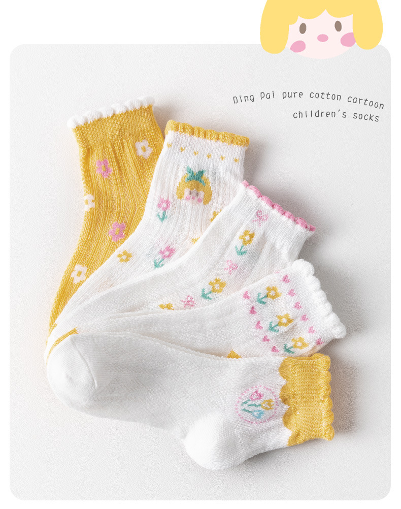 24春夏薄款黄系甜心女孩花边棉短袜可爱清新网眼小花儿童袜子批发 6579 黄系甜心女孩-S(建议1-3岁)