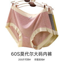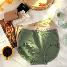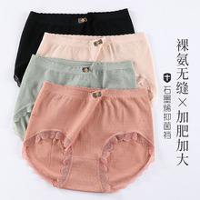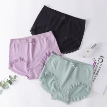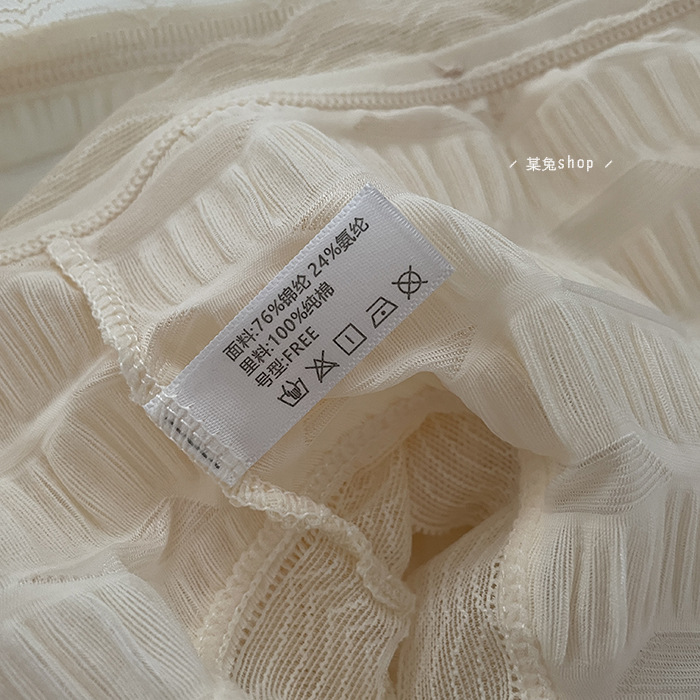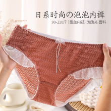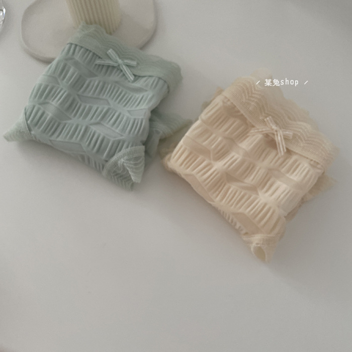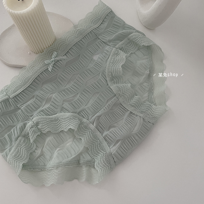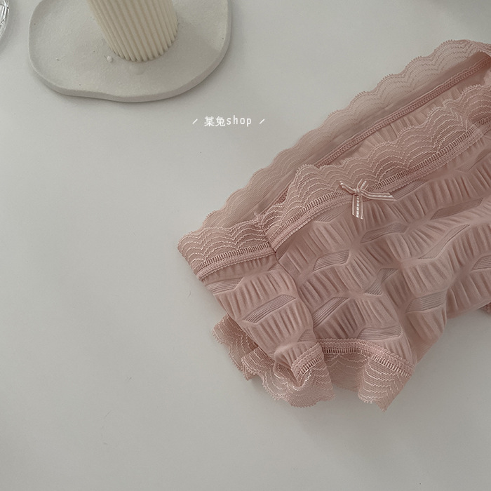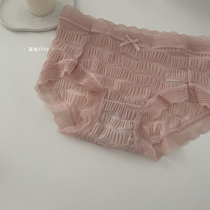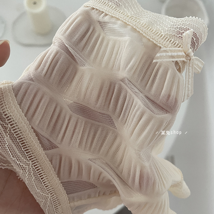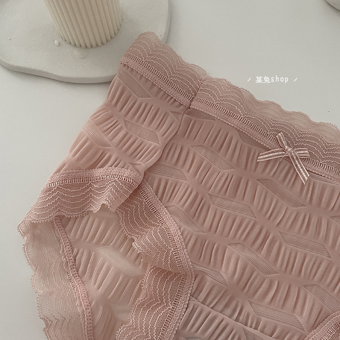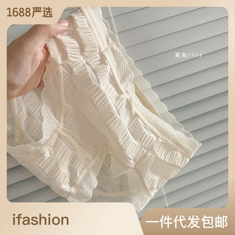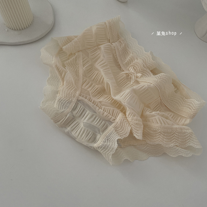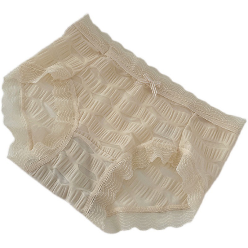 海盐泡泡纱柔软舒服镂空透明性感横条纹少女INS风内裤女平角蕾丝 奶白-L,80~110