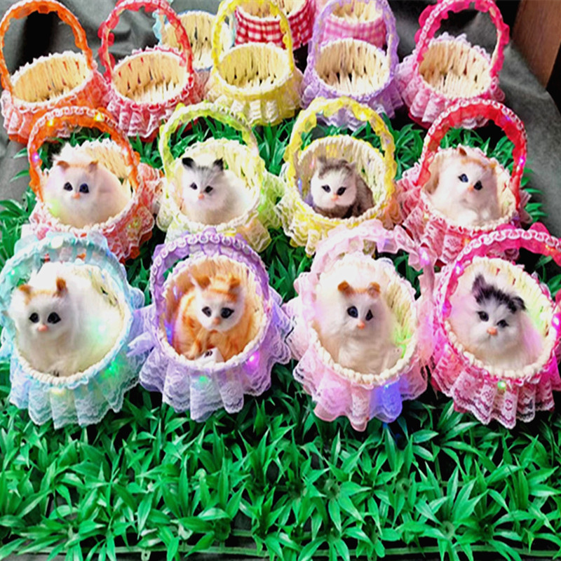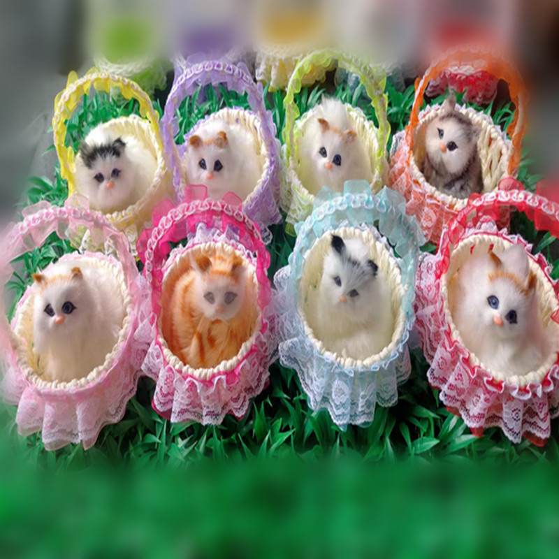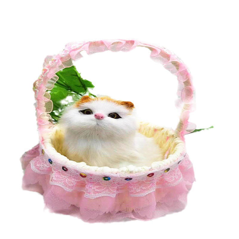 花边提篮猫仿真发声小猫咪毛绒玩偶儿童玩具男孩女孩生日礼品批发 花边提篮(只有篮子哦)-约8.5厘米