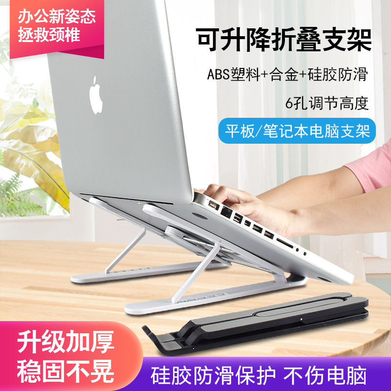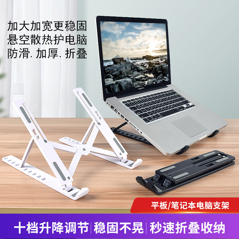 笔记本折叠支架升降调节便携收纳多功能平板通用散热桌面增高支架 d2大号稳固款10档折叠升降【黑色】