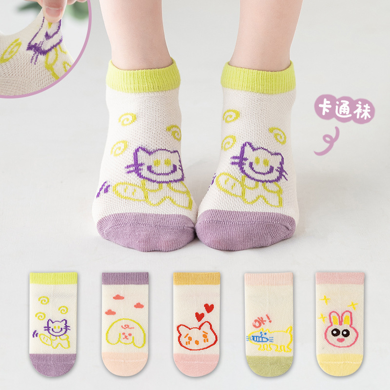 2024春夏新款儿童袜子网眼男童女童袜子夏儿童薄款短袜宝宝童袜棉 2301-S【1-3岁 11-15cm】