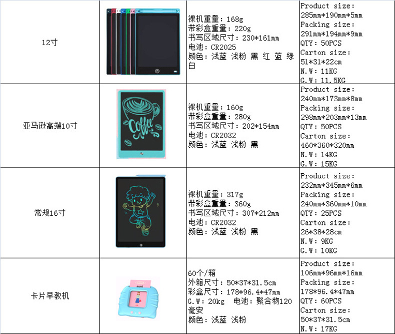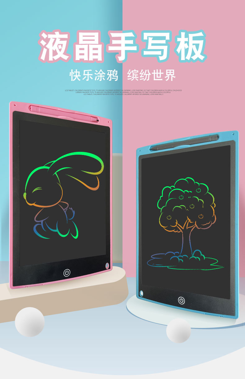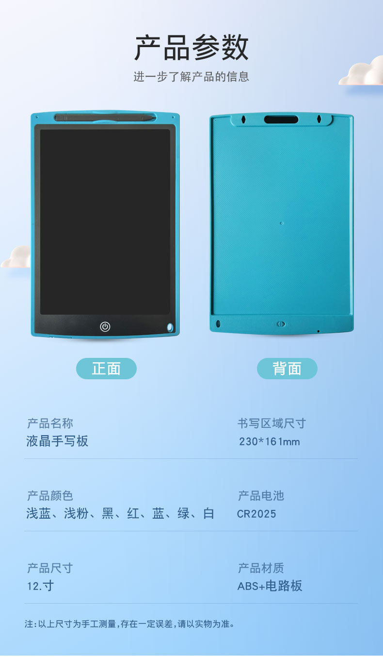 12寸液晶手写板儿童玩具涂鸦绘画板益智启蒙家庭留言板办公记录板 12寸浅蓝-单色