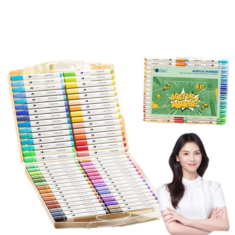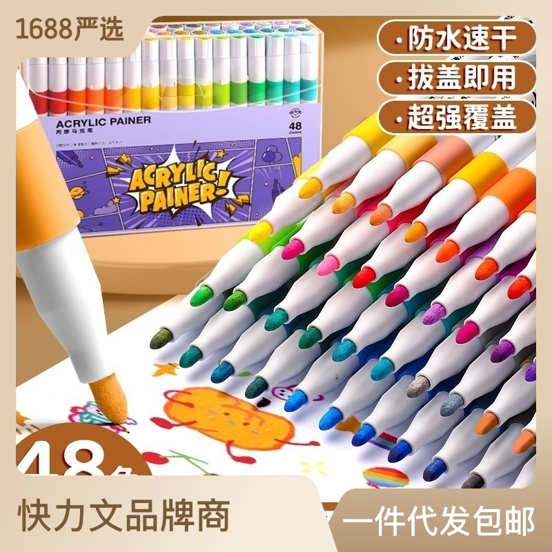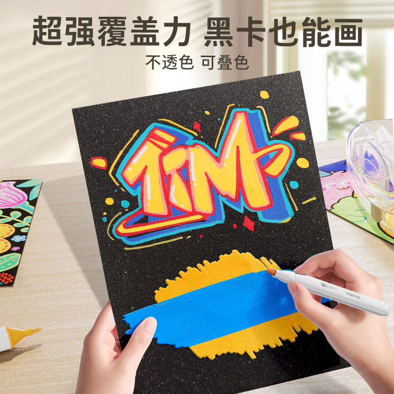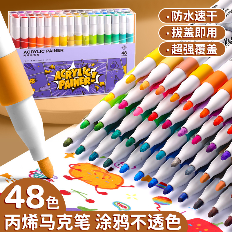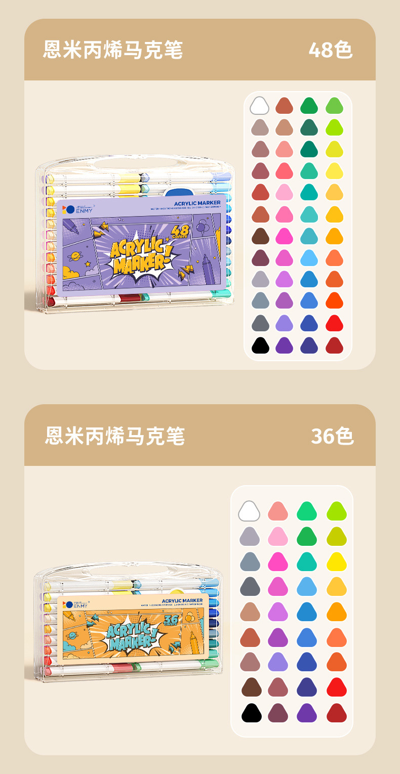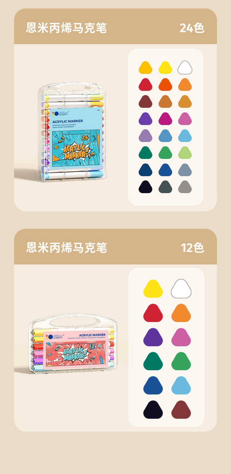 恩米外贸版丙烯马克笔儿童专用学生马克笔丙烯不透色可叠色水性画 ★店长推荐★【-油墨加量50%-加量不加价】 24色