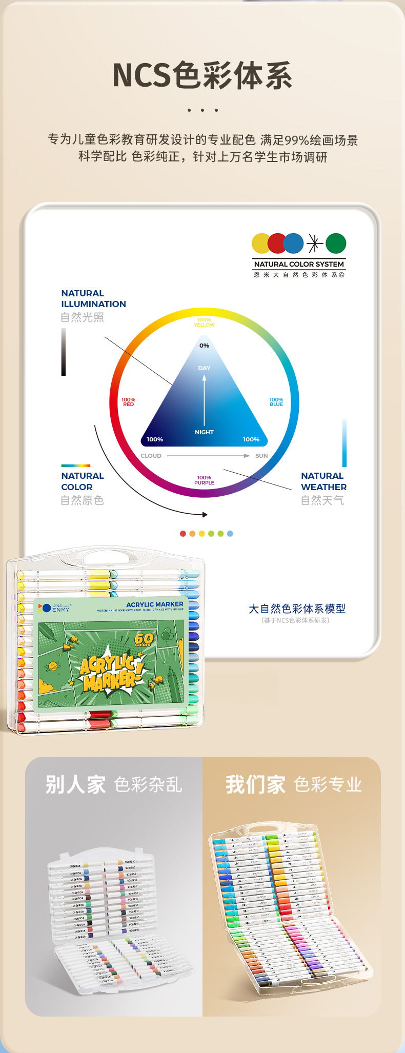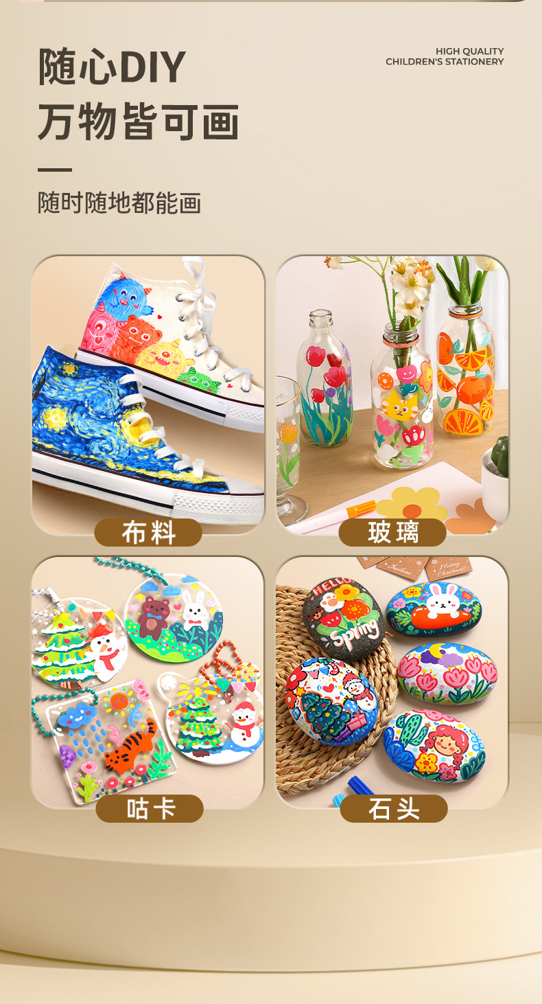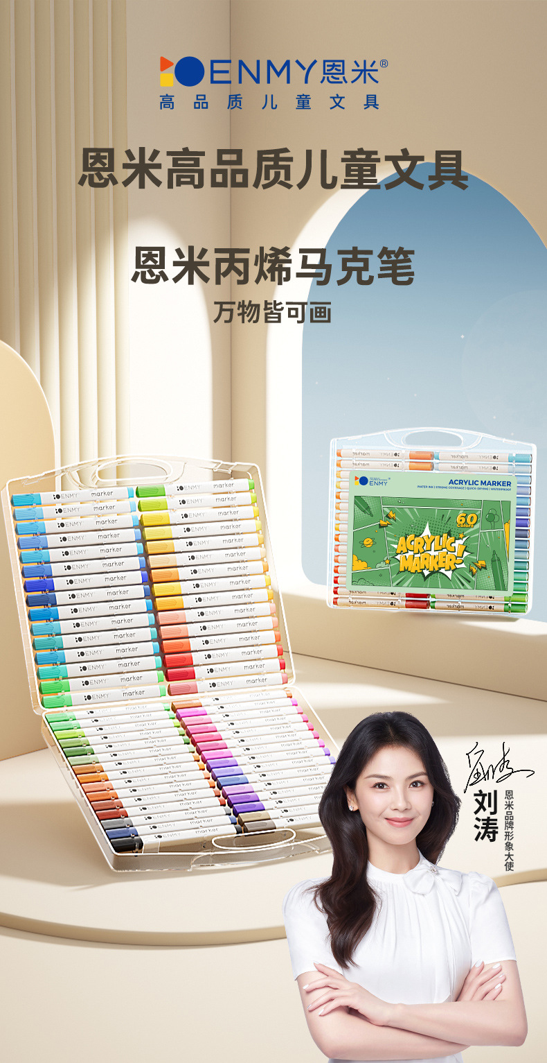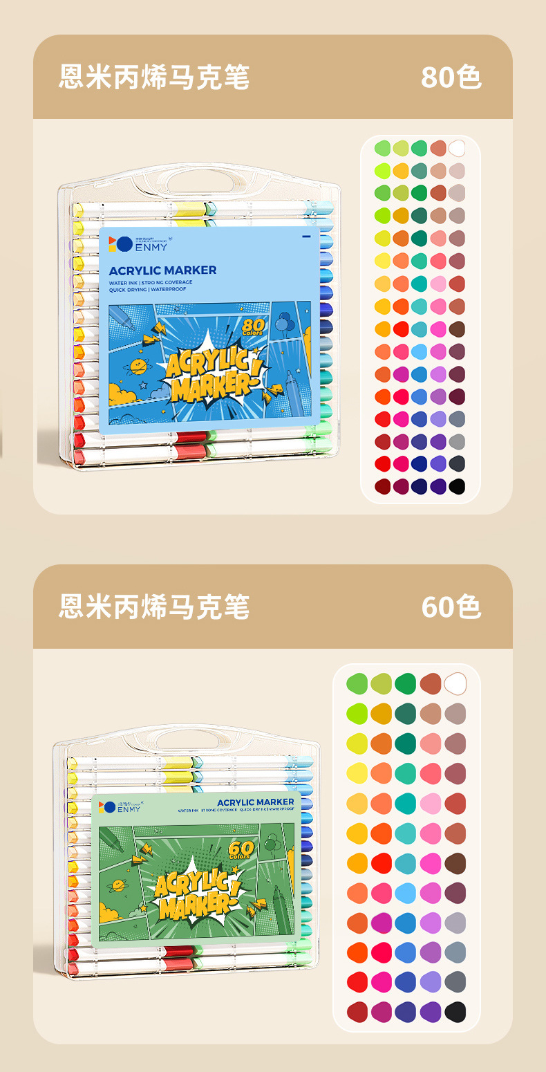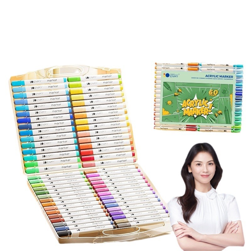 恩米外贸版丙烯马克笔儿童专用学生马克笔丙烯不透色可叠色水性画 ★店长推荐★【-油墨加量50%-加量不加价】 24色