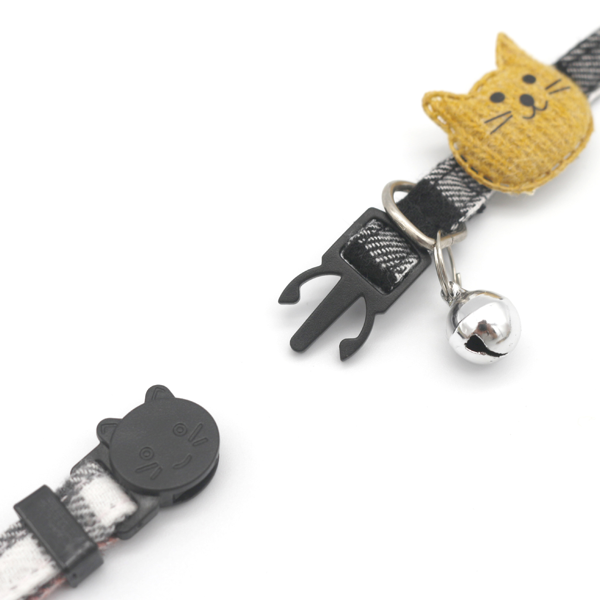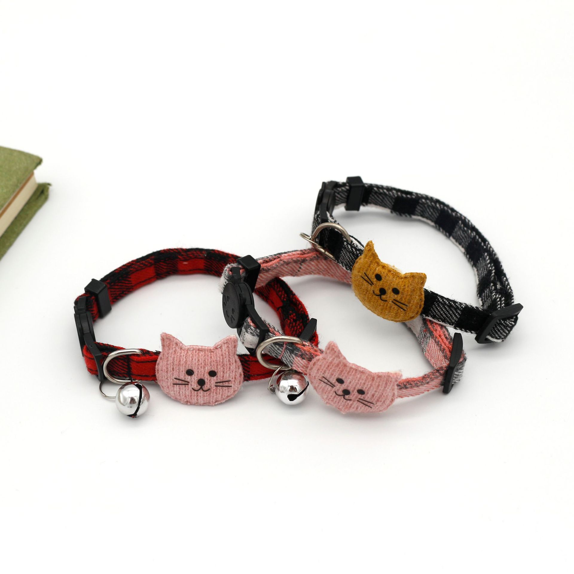 亚马逊跨境新款猫咪格子项圈宠物铃铛项圈蝴蝶结贴布猫扣款猫项圈 红色