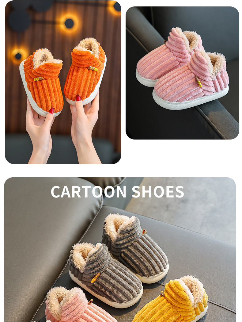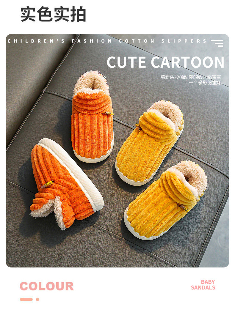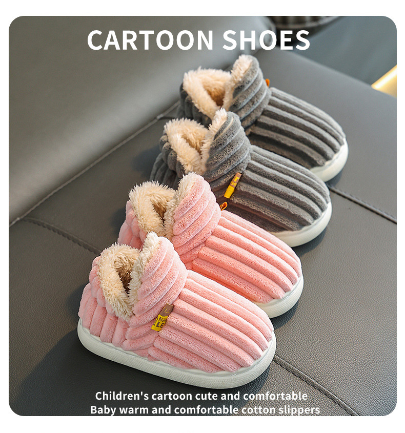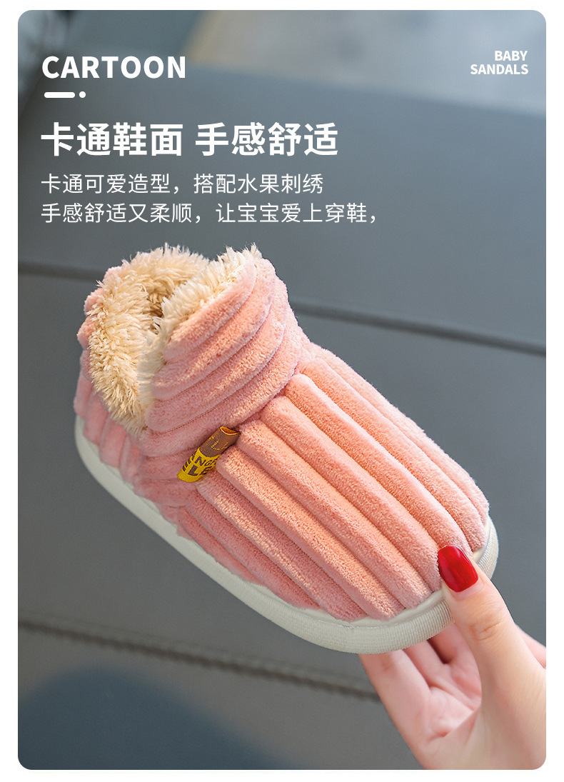 儿童棉拖鞋冬季男童宝宝包跟1-3岁2保暖室内家居小孩女棉鞋毛毛鞋 灰色(包跟)-22/23码(内长14CM适合1-2周岁)