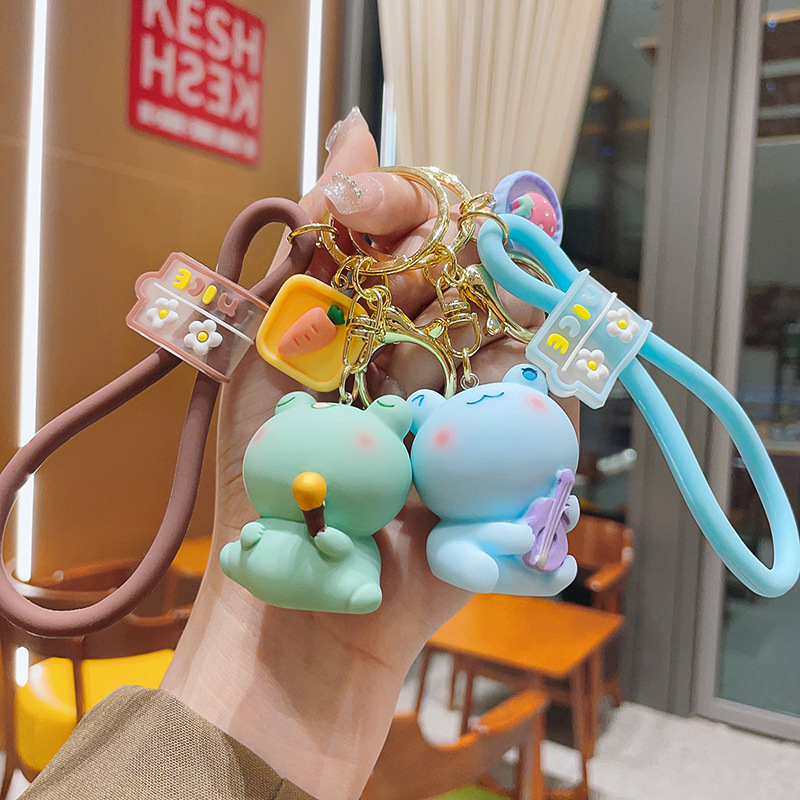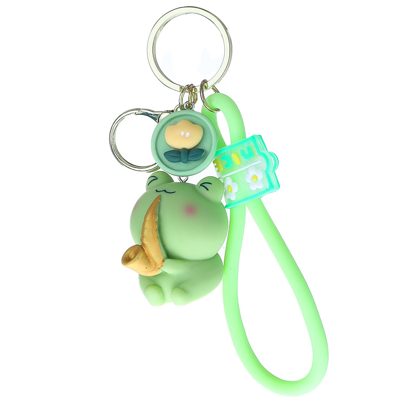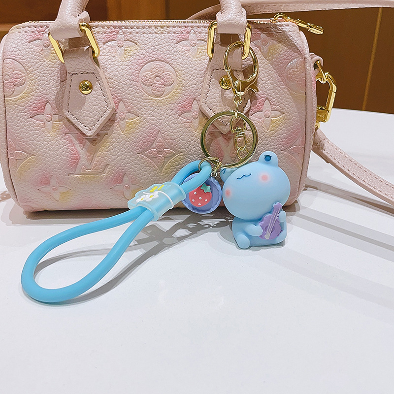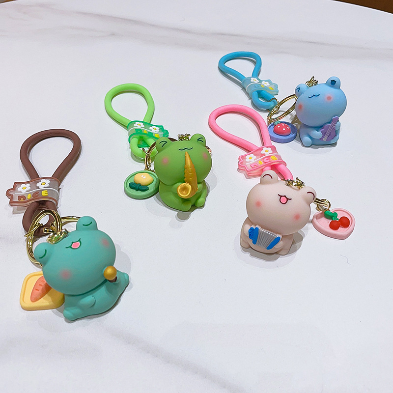 创意卡通公仔树脂音乐青蛙钥匙扣精致汽车钥匙链包包挂件礼品批发 粉+小凤琴