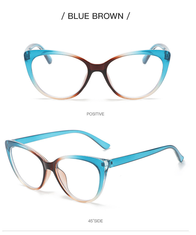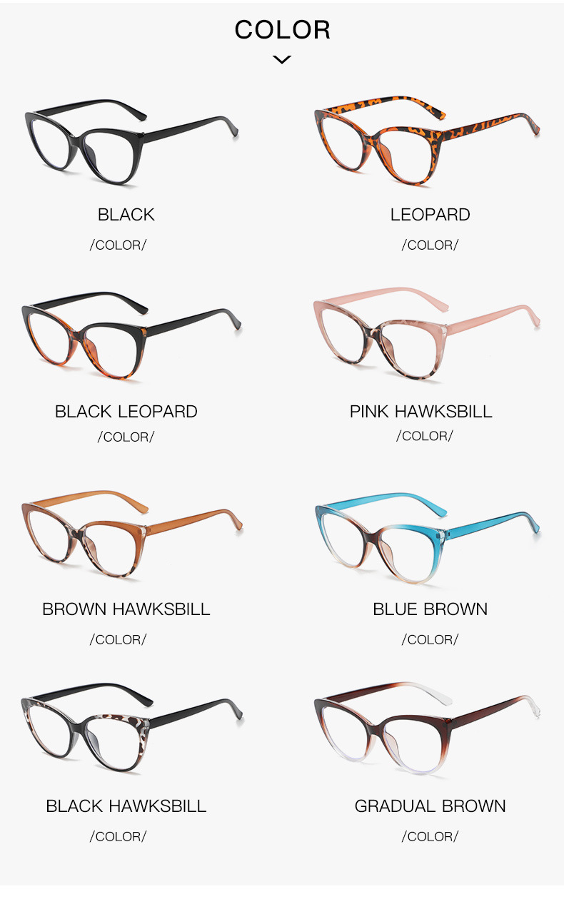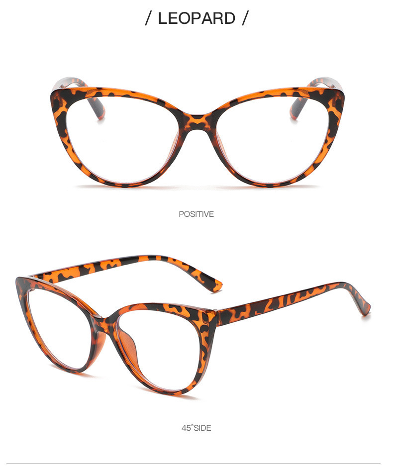 2023新款欧美跨境猫眼变色眼镜素颜防蓝光平光镜高级感时尚女 粉豹纹-变色镜片