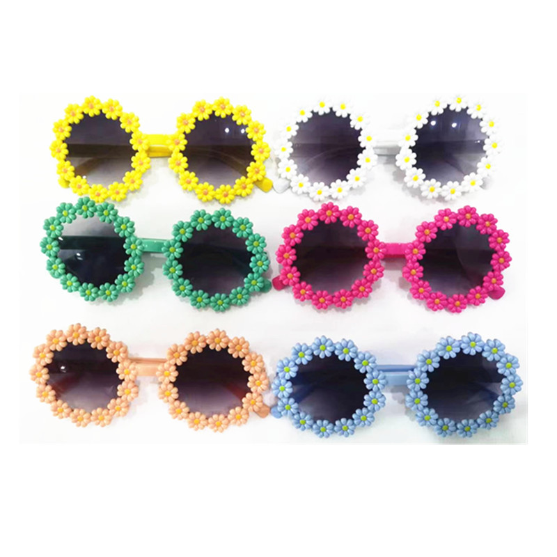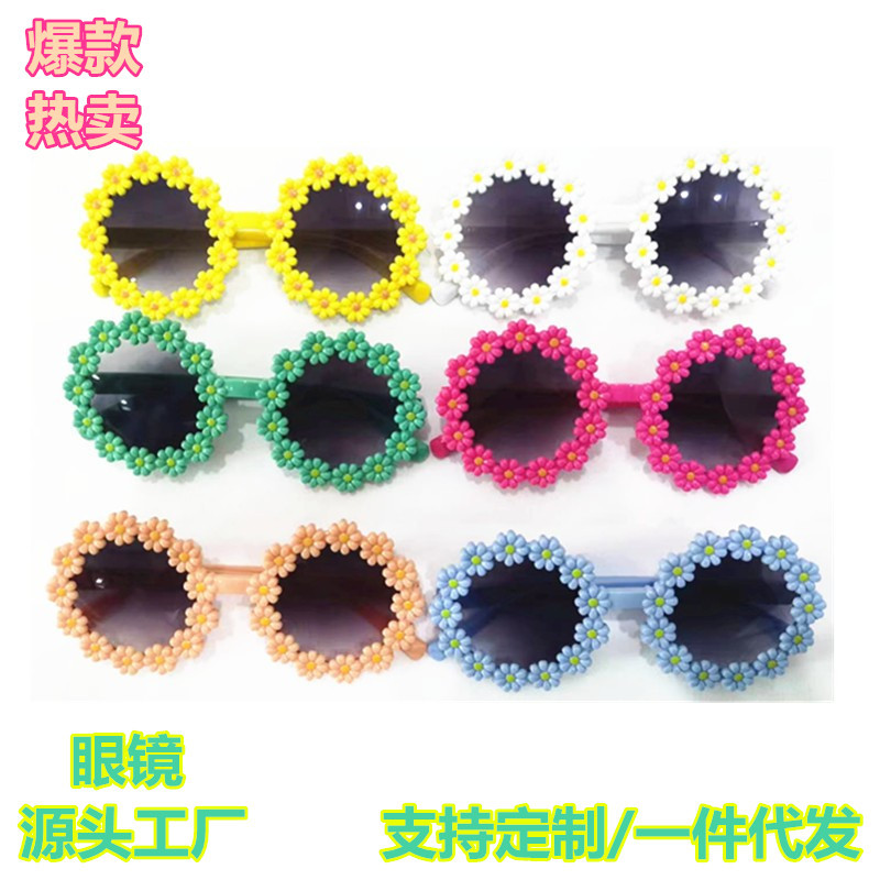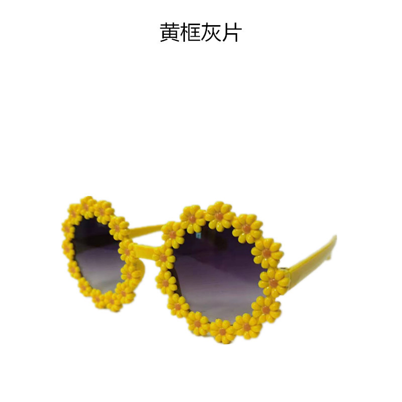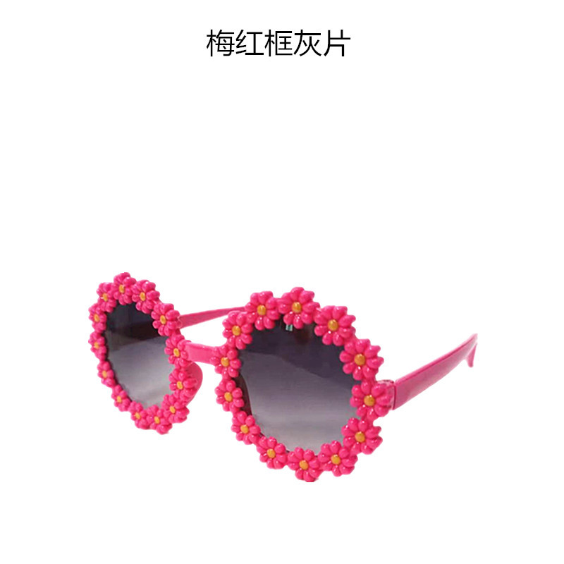 新款韩版花朵儿童太阳镜男女童防紫外线小雏菊墨镜宝宝遮阳镜潮 梅红框灰片