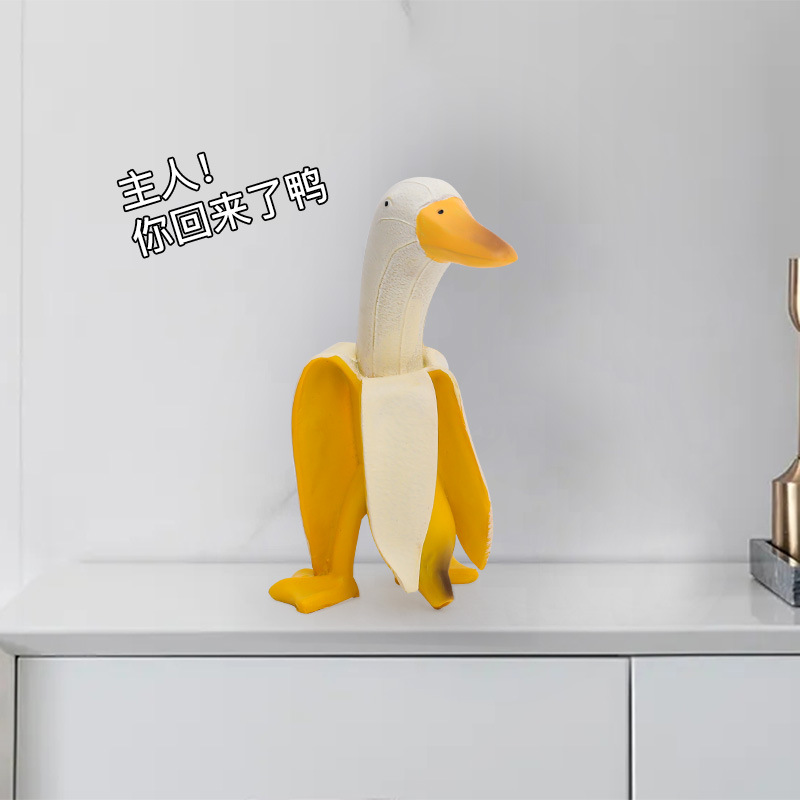 设计款香蕉鸭创意树脂摆件趣味礼物丑萌装饰搞怪艺术桌面摆饰黄鸭 香蕉黄鸭
