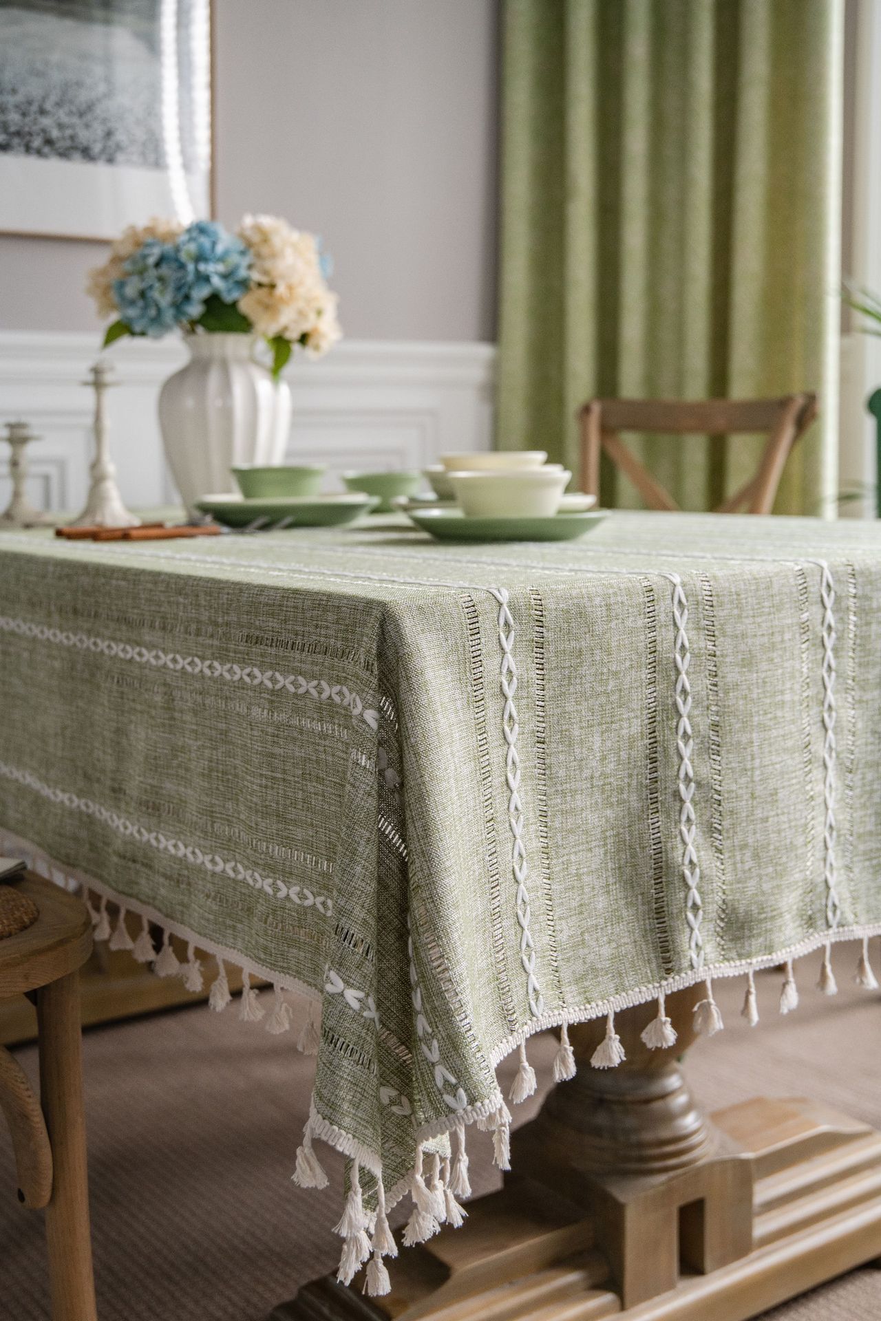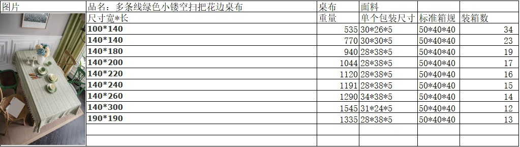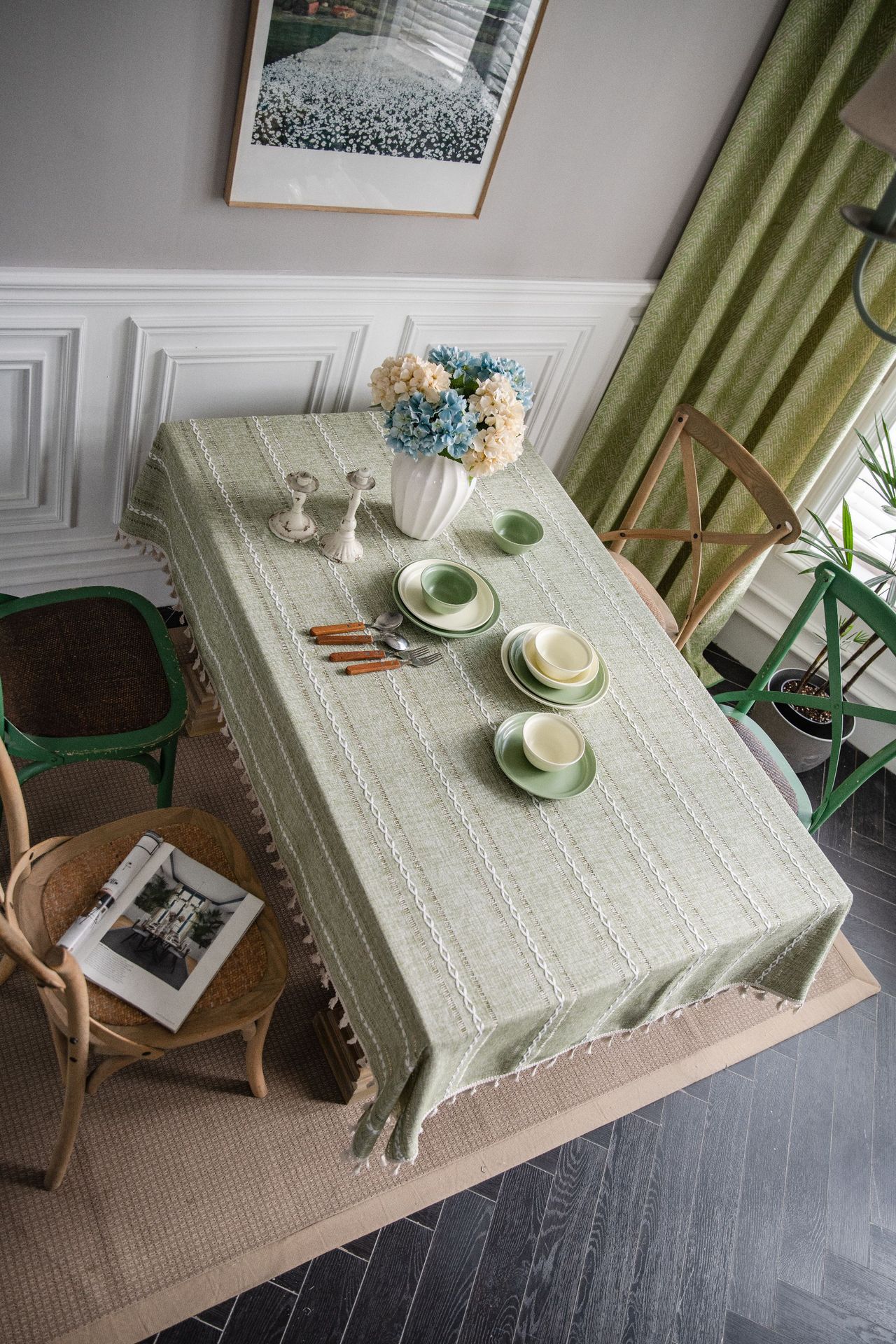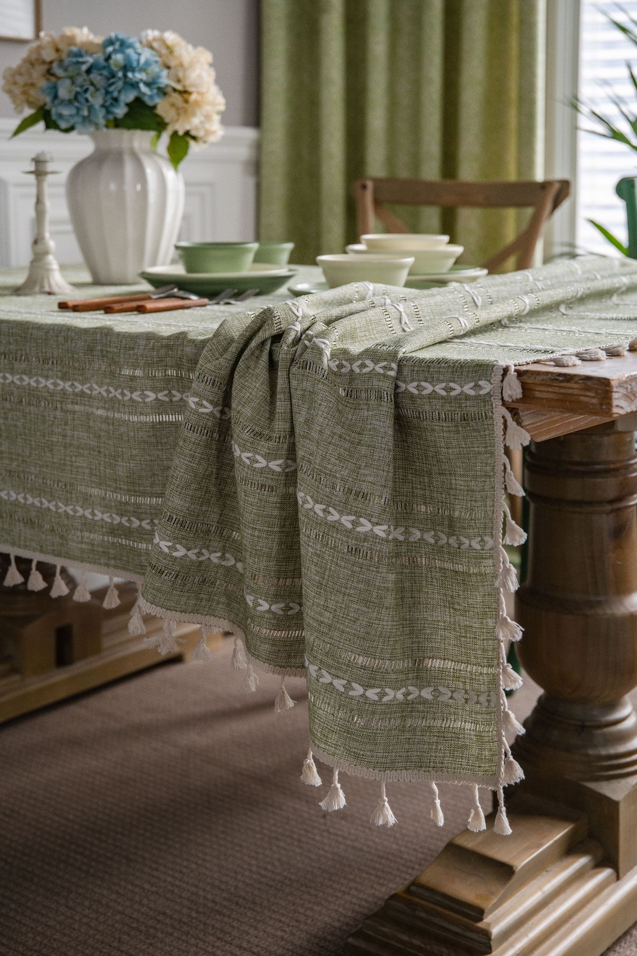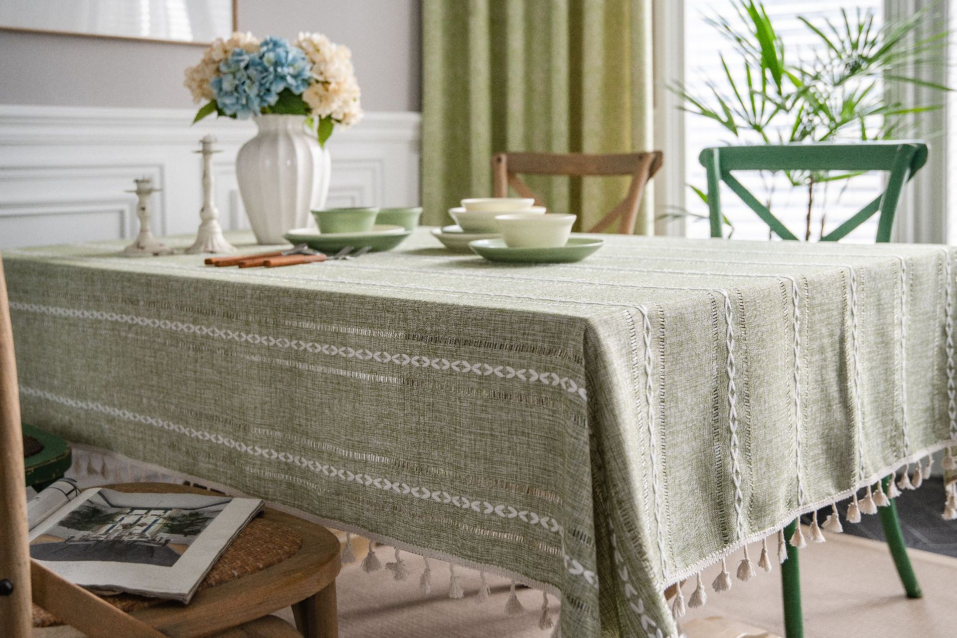 伊缦琪韵桌布绿色镂空美式乡村布艺棉麻清晰网红 ins长方形餐桌布 多条线绿色小镂空 扫把花边-60*60