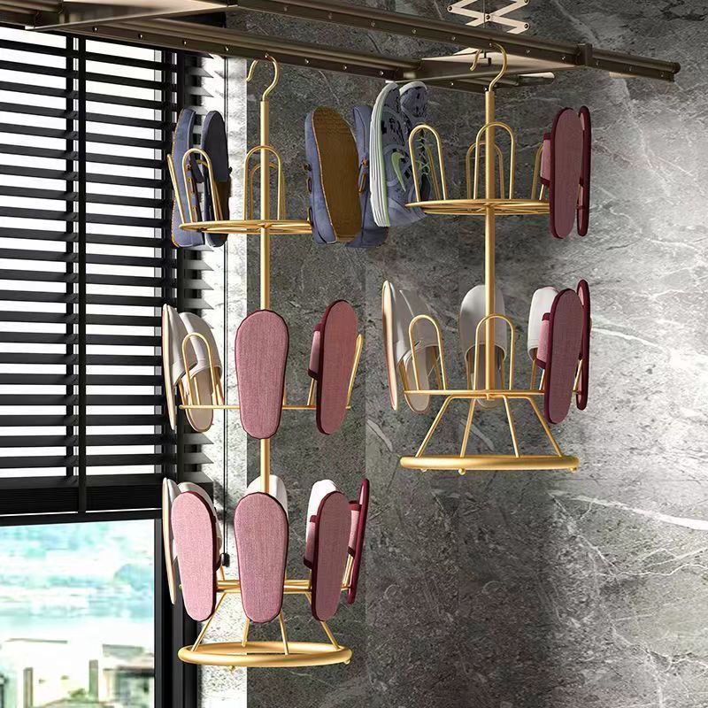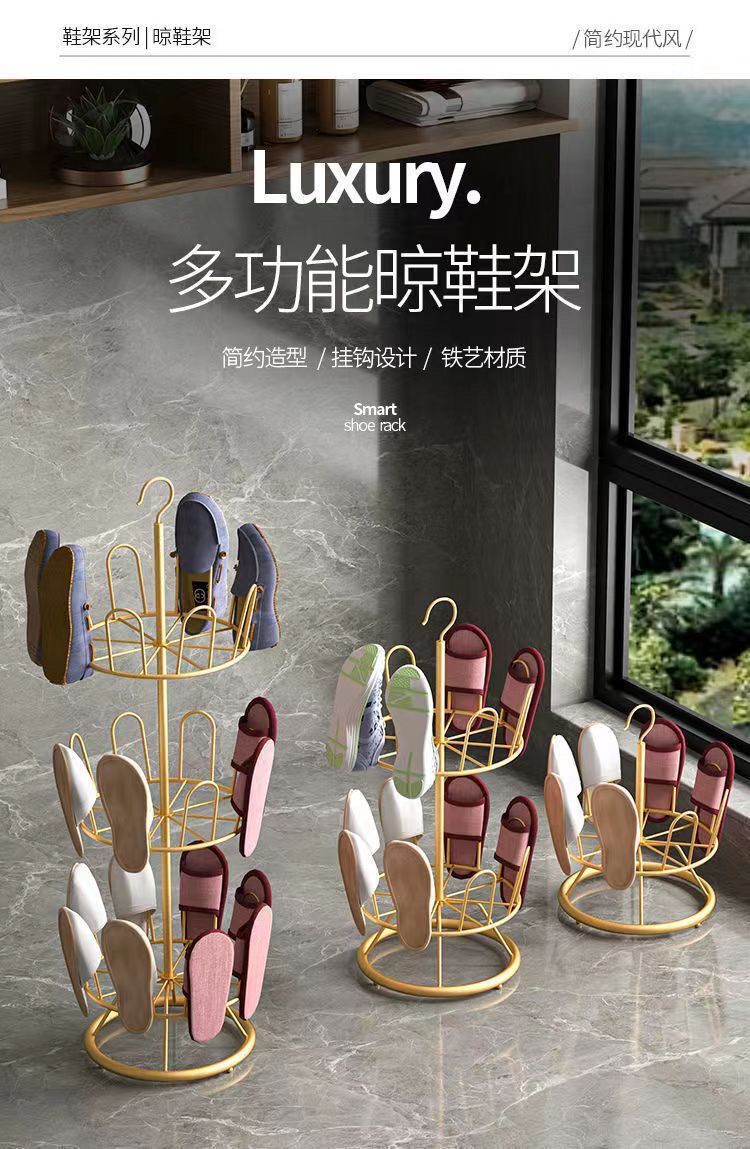 晾鞋架室外阳台凉鞋架子晾晒鞋架落地旋转拖鞋挂鞋架晒鞋子神器 二层豪华款黑色(放16只鞋)