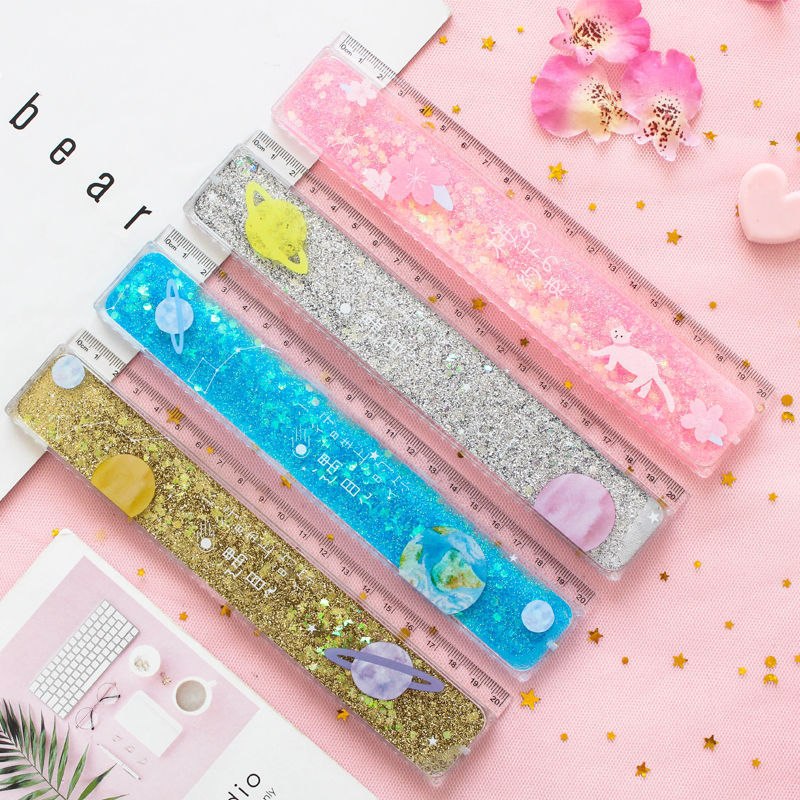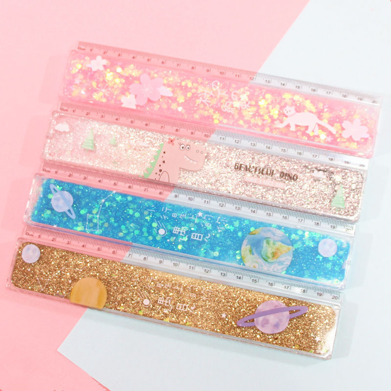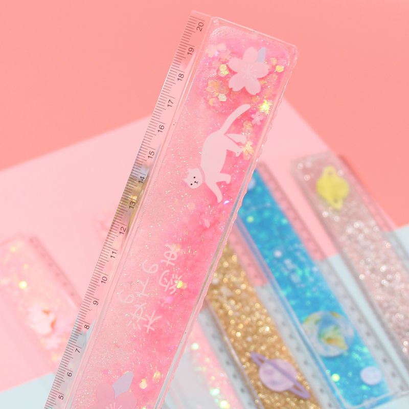 流沙尺网红子可爱萌少女心直韩版创意小学生文具刻度批发 樱花流沙尺【款式一把】-默认