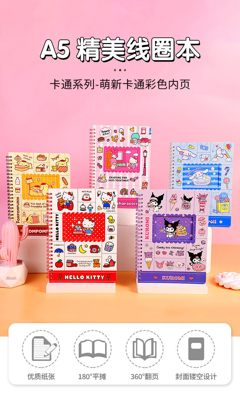 三丽鸥文具库洛米手账本卡通印花彩页玉桂狗笔记本学生A5线圈本 库洛米