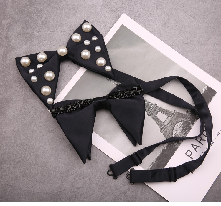 男士大领结蝴蝶结 礼服牛角尖角黑色白色西装镶嵌舞台演出领结 001