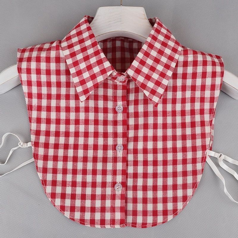 大红色格子假领子假领衬衣领格子领百搭棉衬衫领卫衣领节约领子 大红色格子