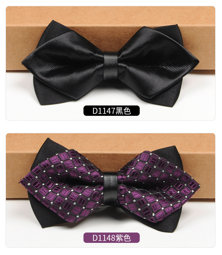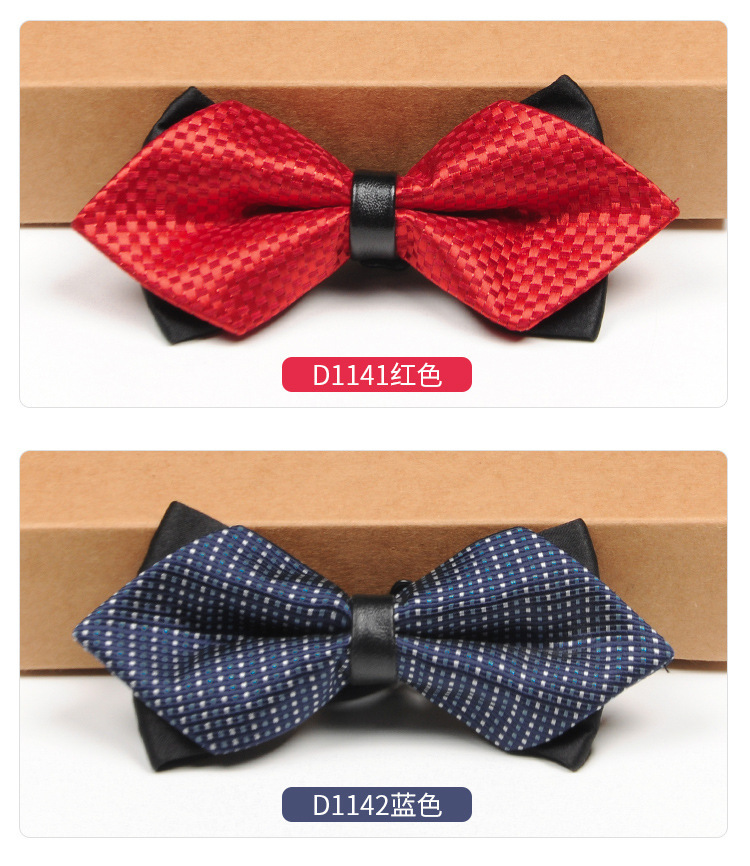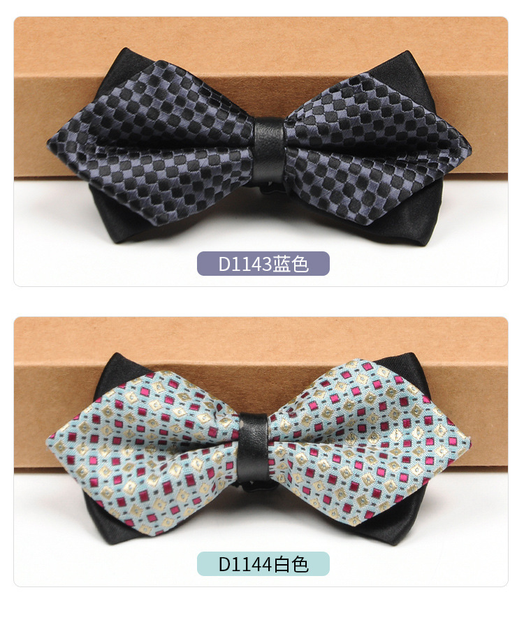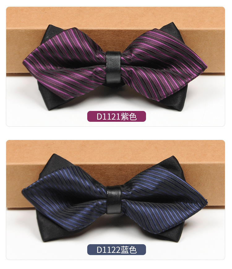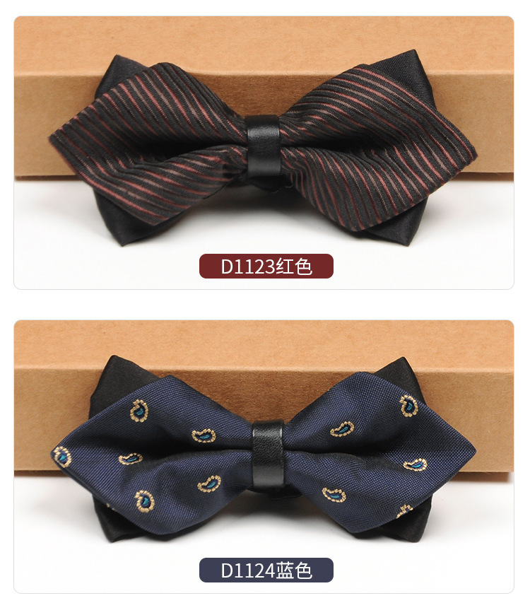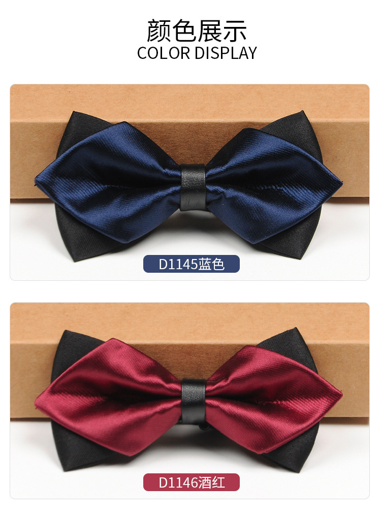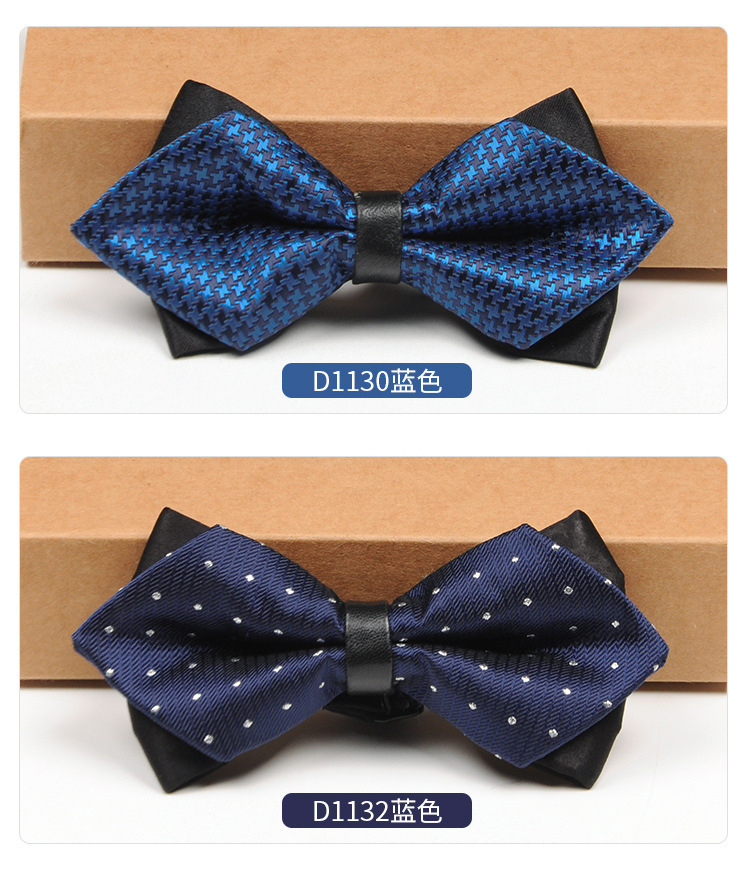 尖角领结男士正装西服英伦韩版尖头双层新郎结婚婚礼酒红色蝴蝶结 D1145蓝色