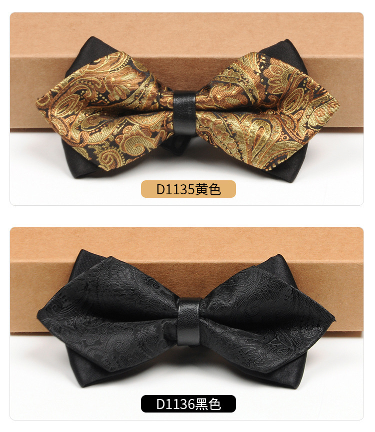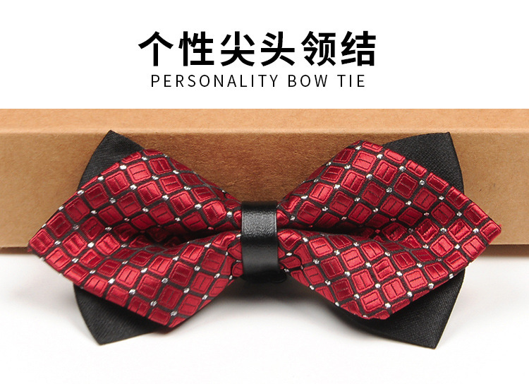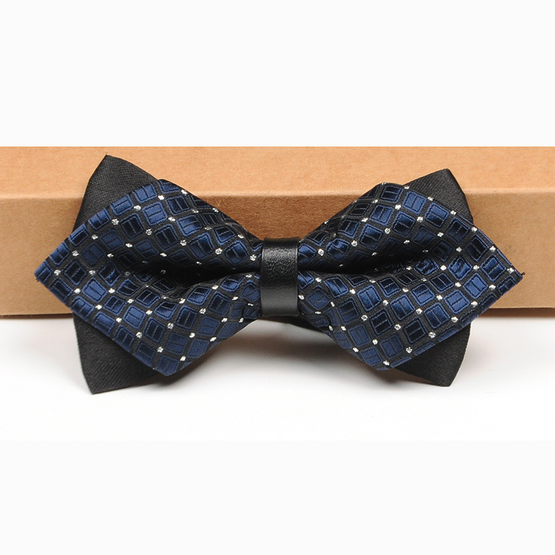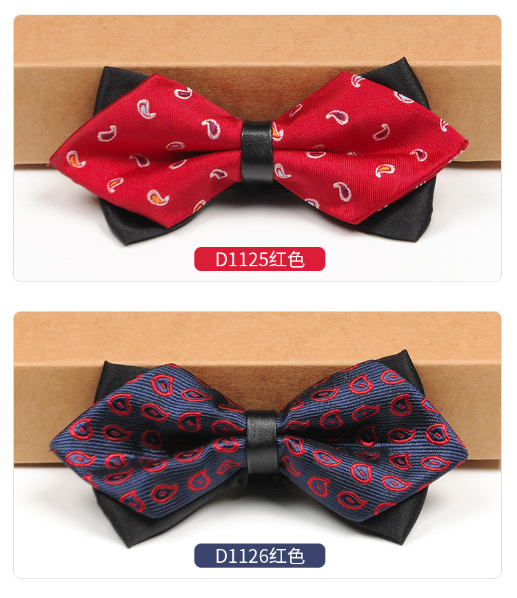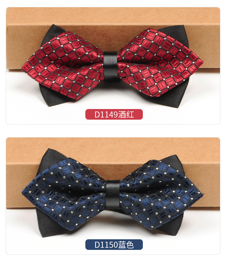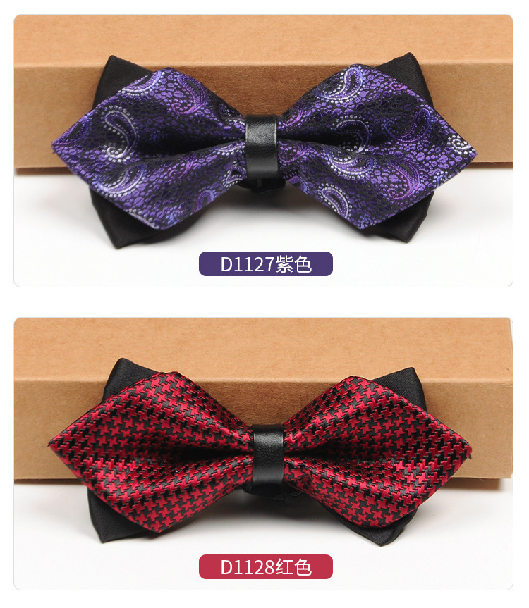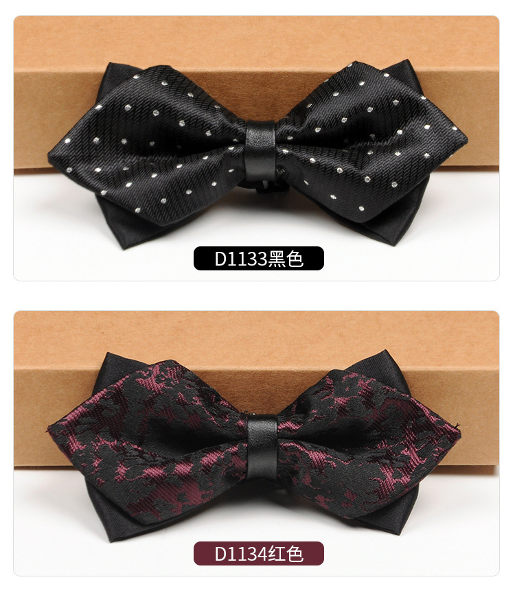 尖角领结男士正装西服英伦韩版尖头双层新郎结婚婚礼酒红色蝴蝶结 D1145蓝色