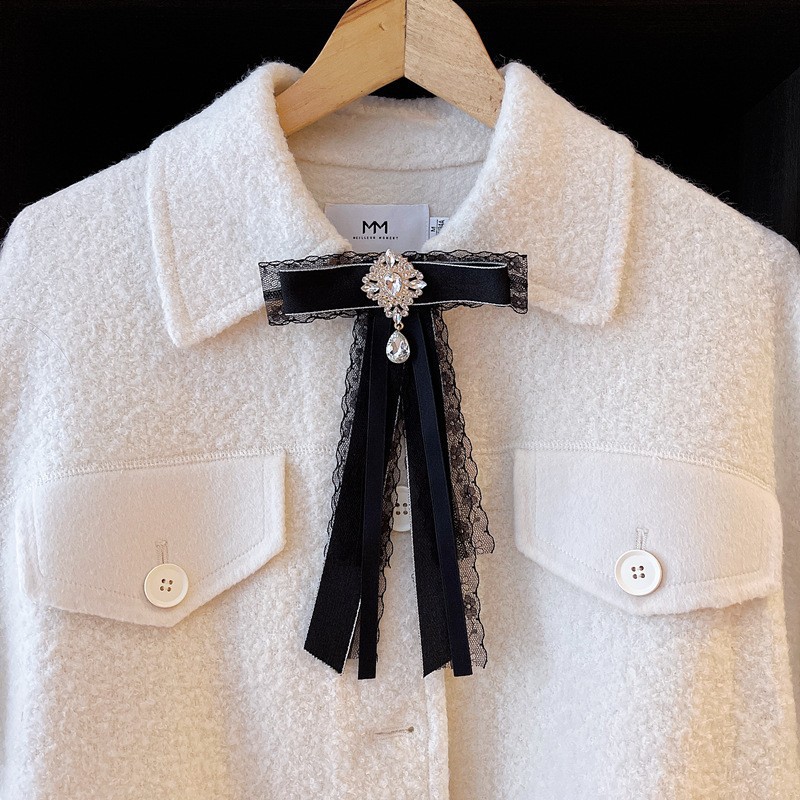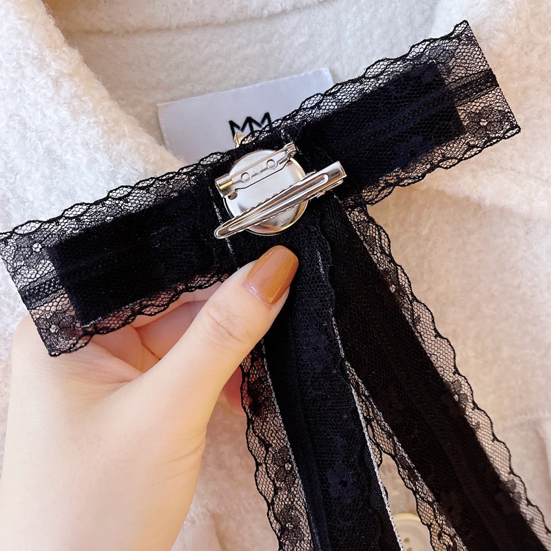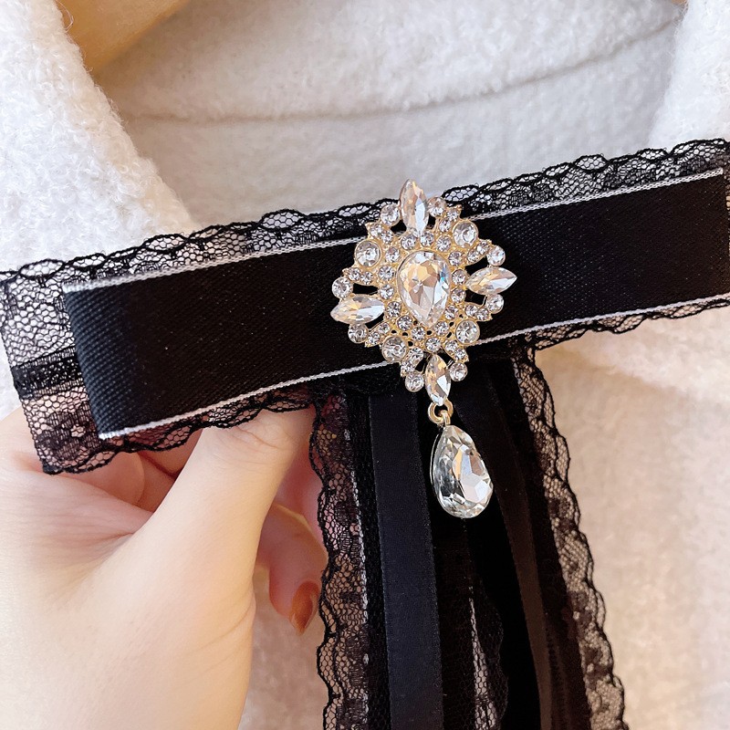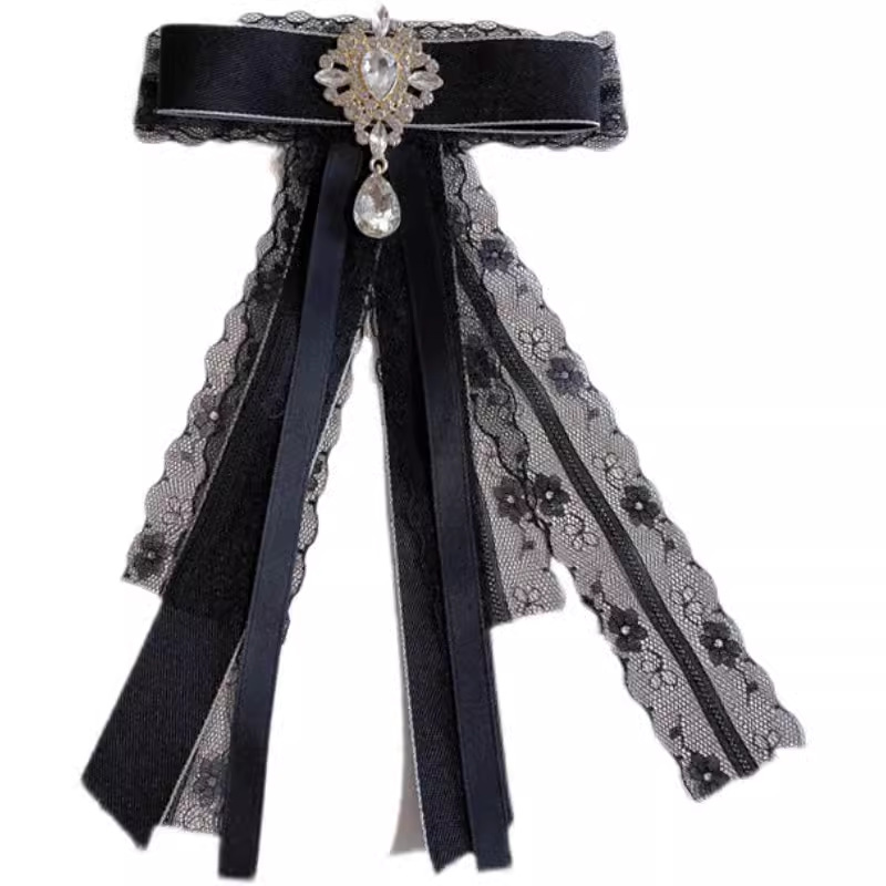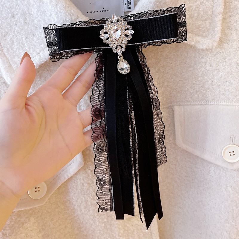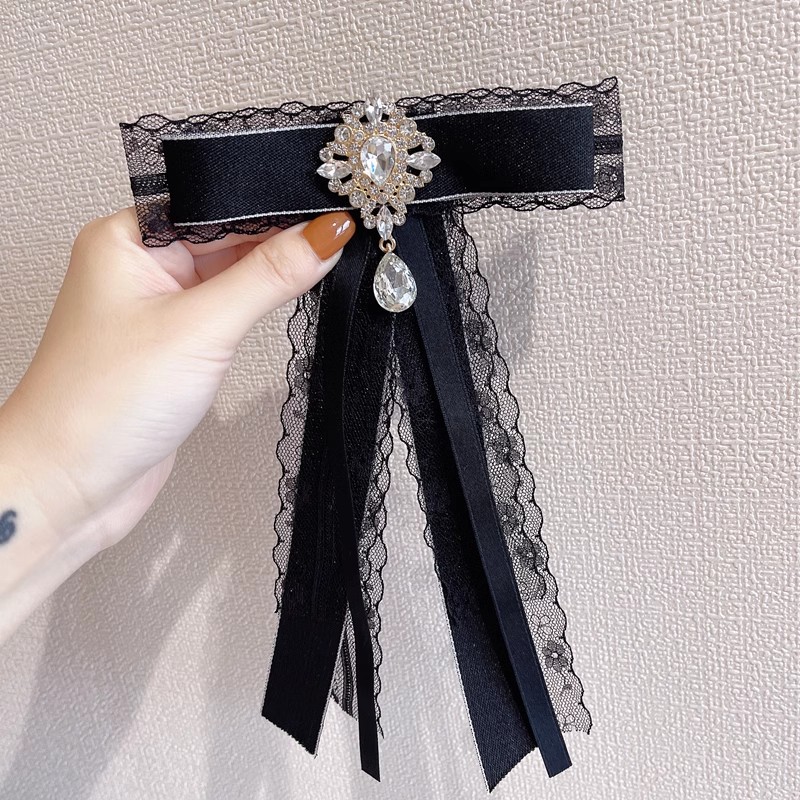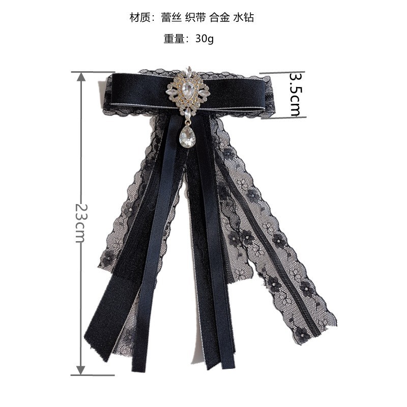 学院风黑色蕾丝领结胸针精致蝴蝶结水钻飘带领花少女复古英伦配饰 黑色