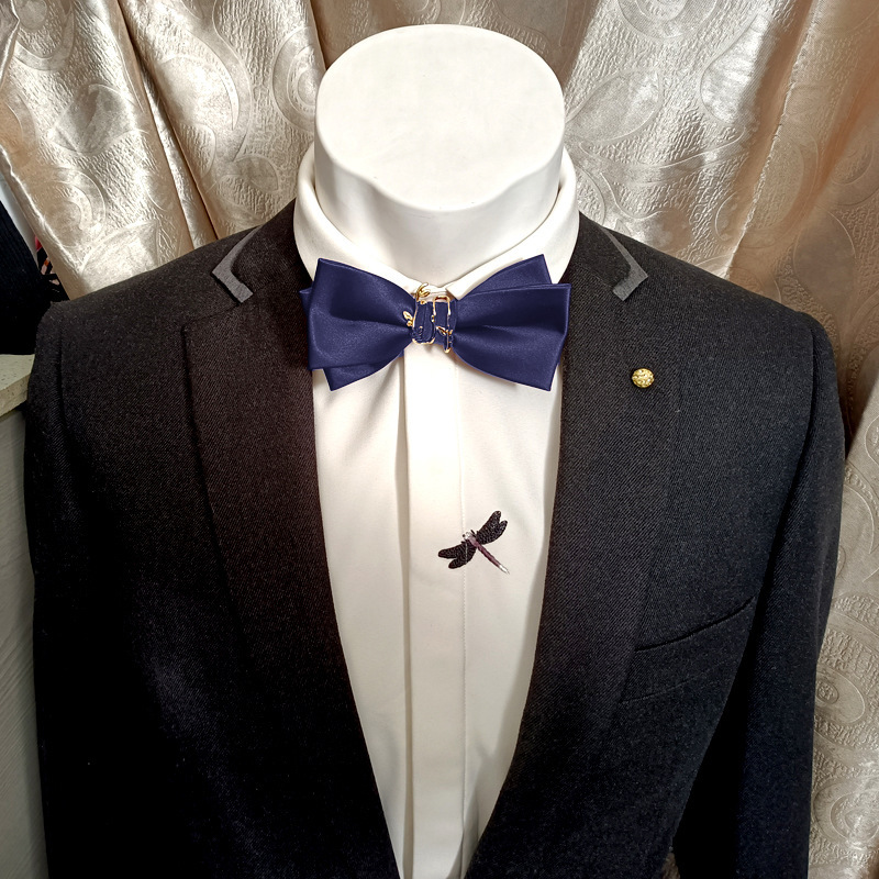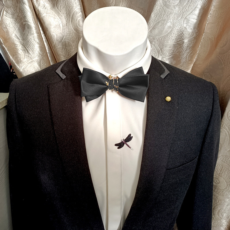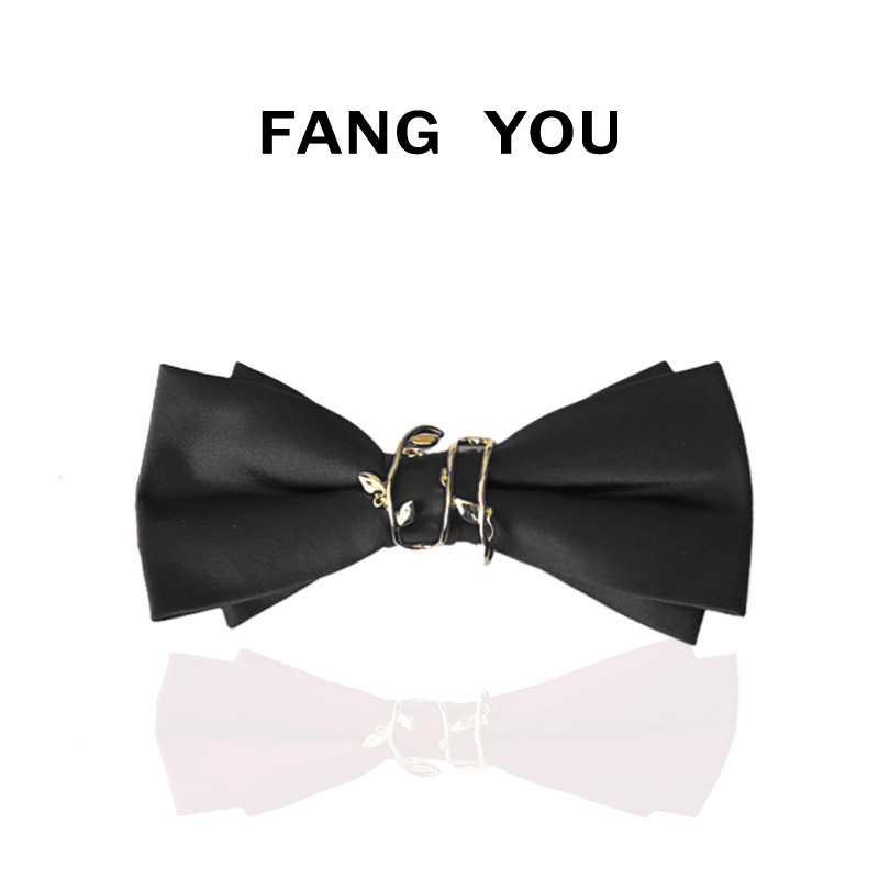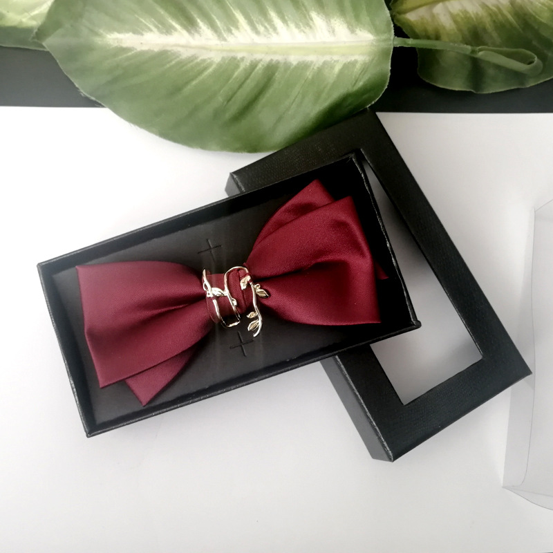 男士婚礼领结新郎结婚酒红色连理枝双层纯色伴郎西装男蝴蝶结个性 红色