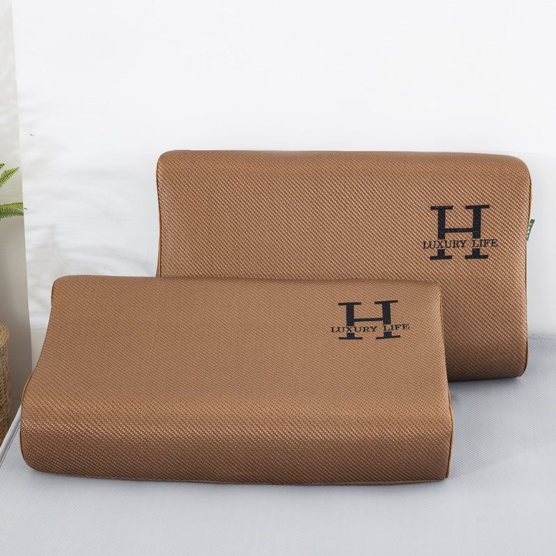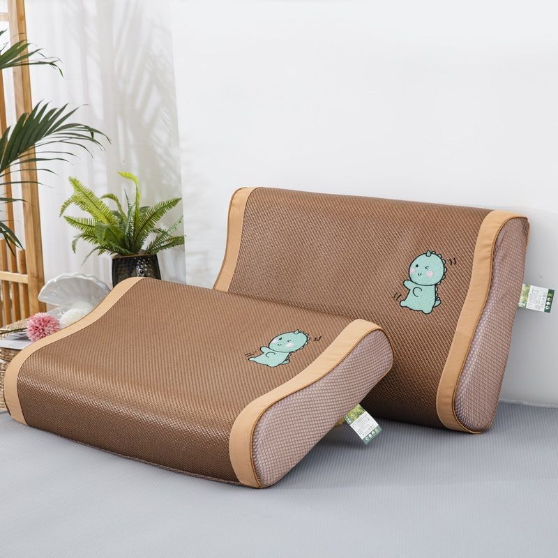 新款艾草夏季乳胶冰丝枕套夏天冰藤记忆凉枕套学生枕头套一对拍2 H款黄【新升级艾草助眠】-30x50cm/7+9cm