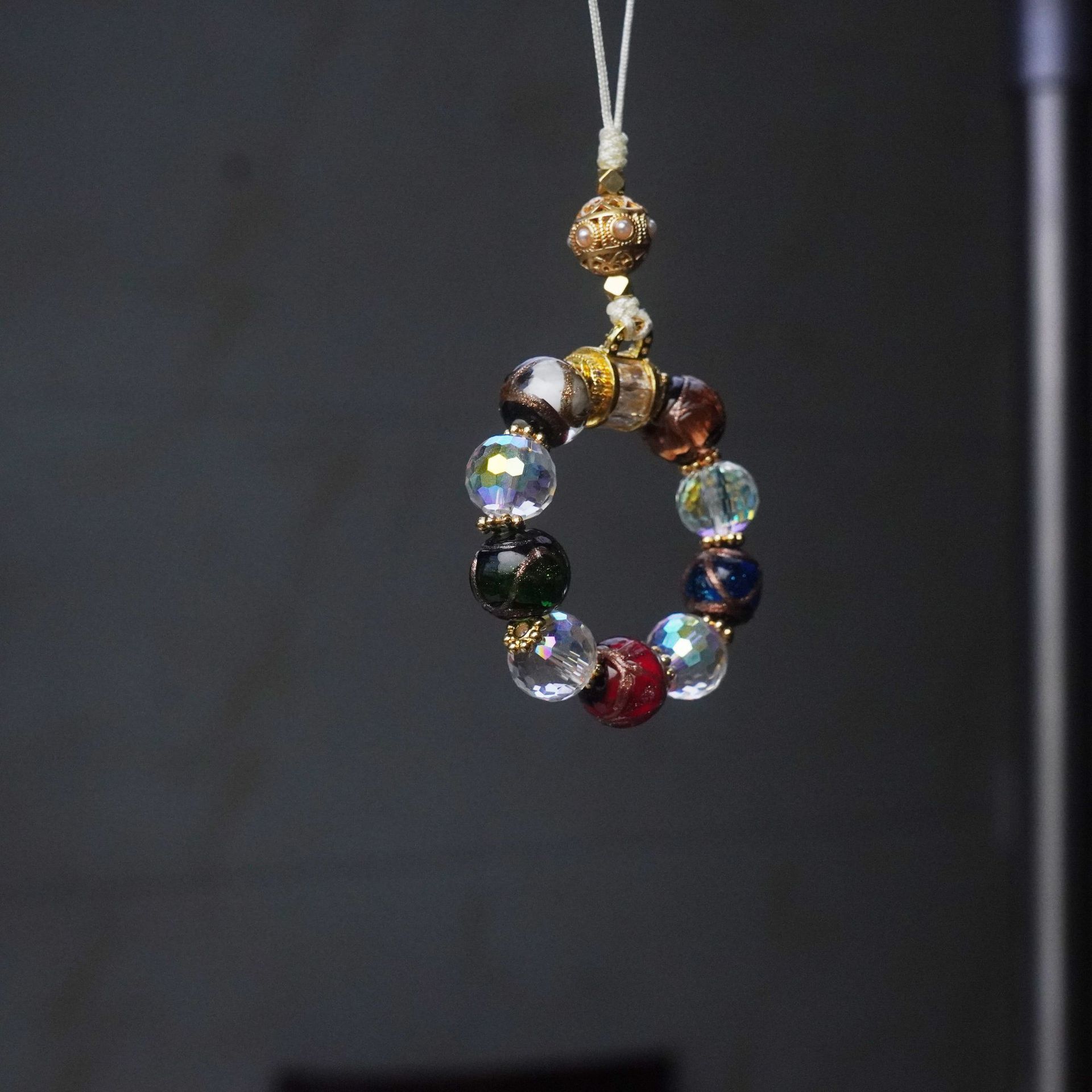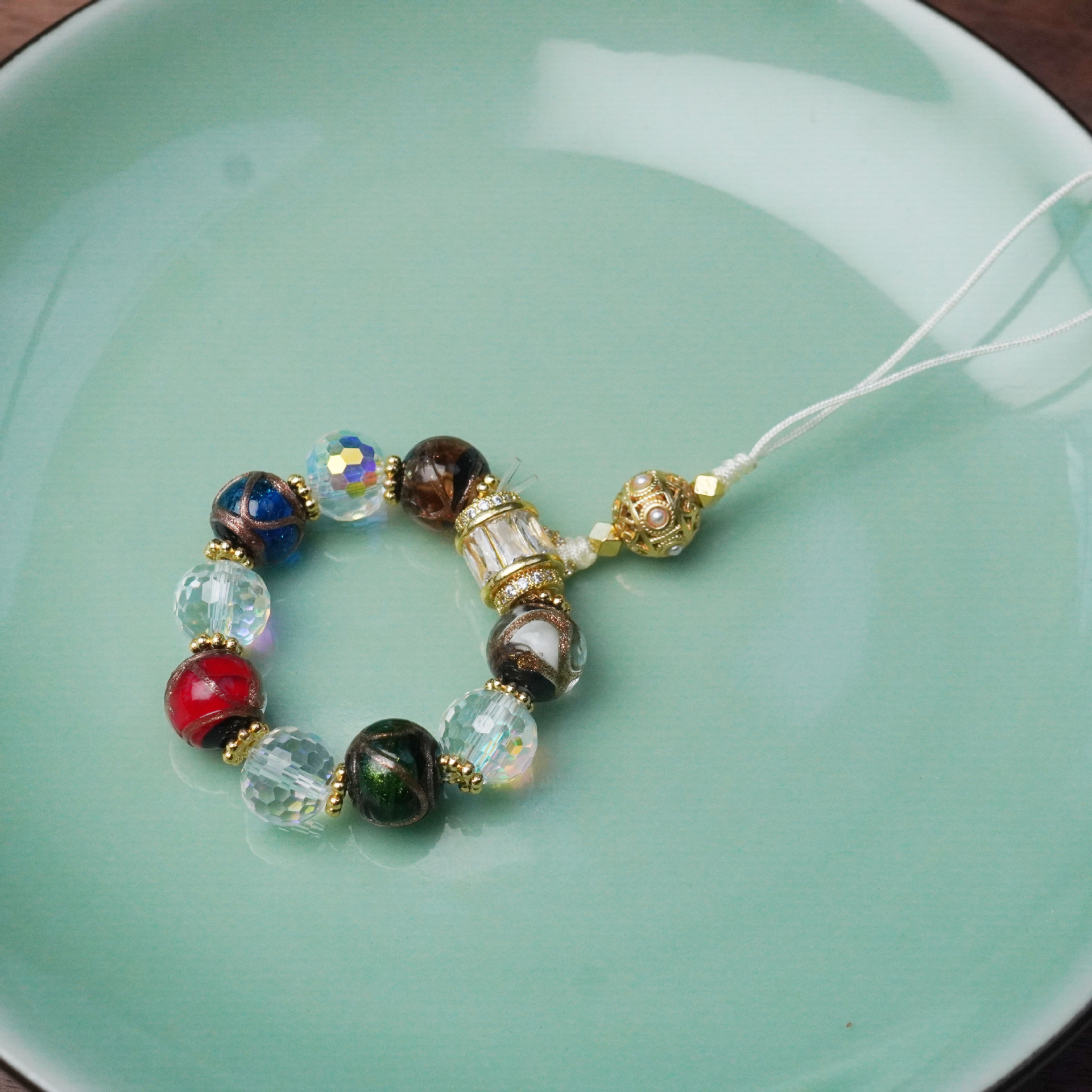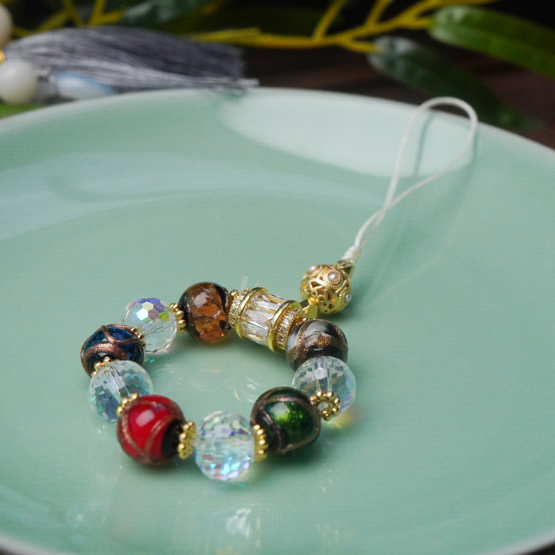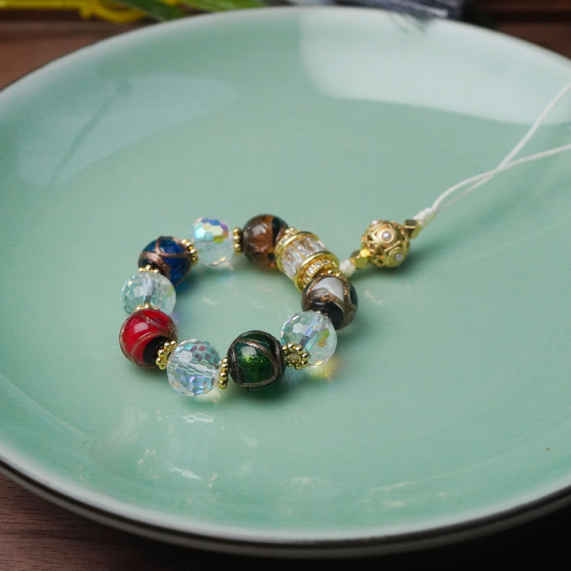 景区多宝五色香灰琉璃手机链车挂钥匙链古风五路财神吊坠配饰挂件 多宝五色香灰琉璃手机链
