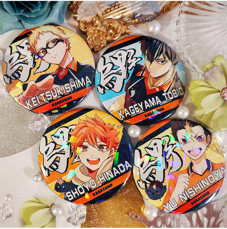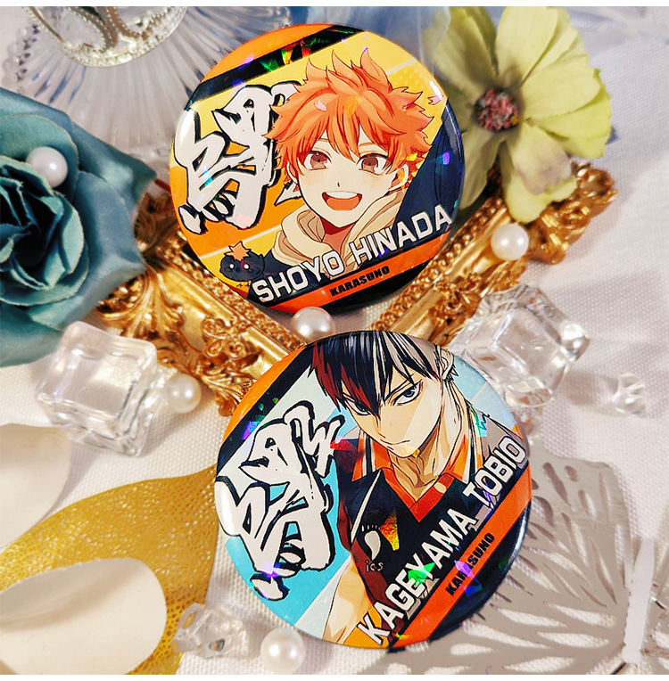 排球少年徽章动漫吧唧日向翔阳影山飞雄月岛萤西谷夕马口铁周边谷 日向翔阳-58mm镭射吧唧【内含背卡干燥剂】