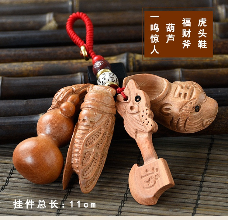 - 桃木枝+剑+斧+葫芦+五帝钱 钥匙扣