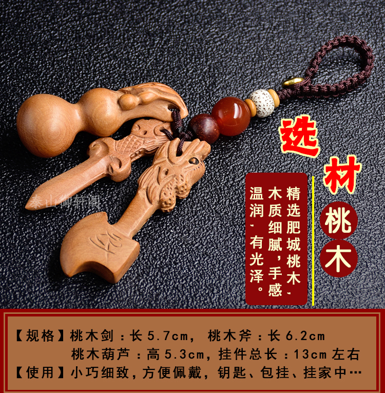 - 桃木龙头剑+斧+葫芦(红)6cm