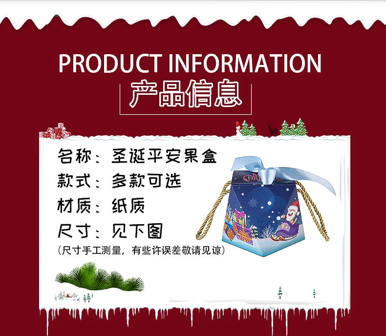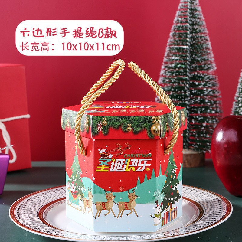2023圣诞节小礼物儿童礼品平安果苹手提礼盒包装盒空盒子批发夜袋 手提老人小屋(5个装)-无规格