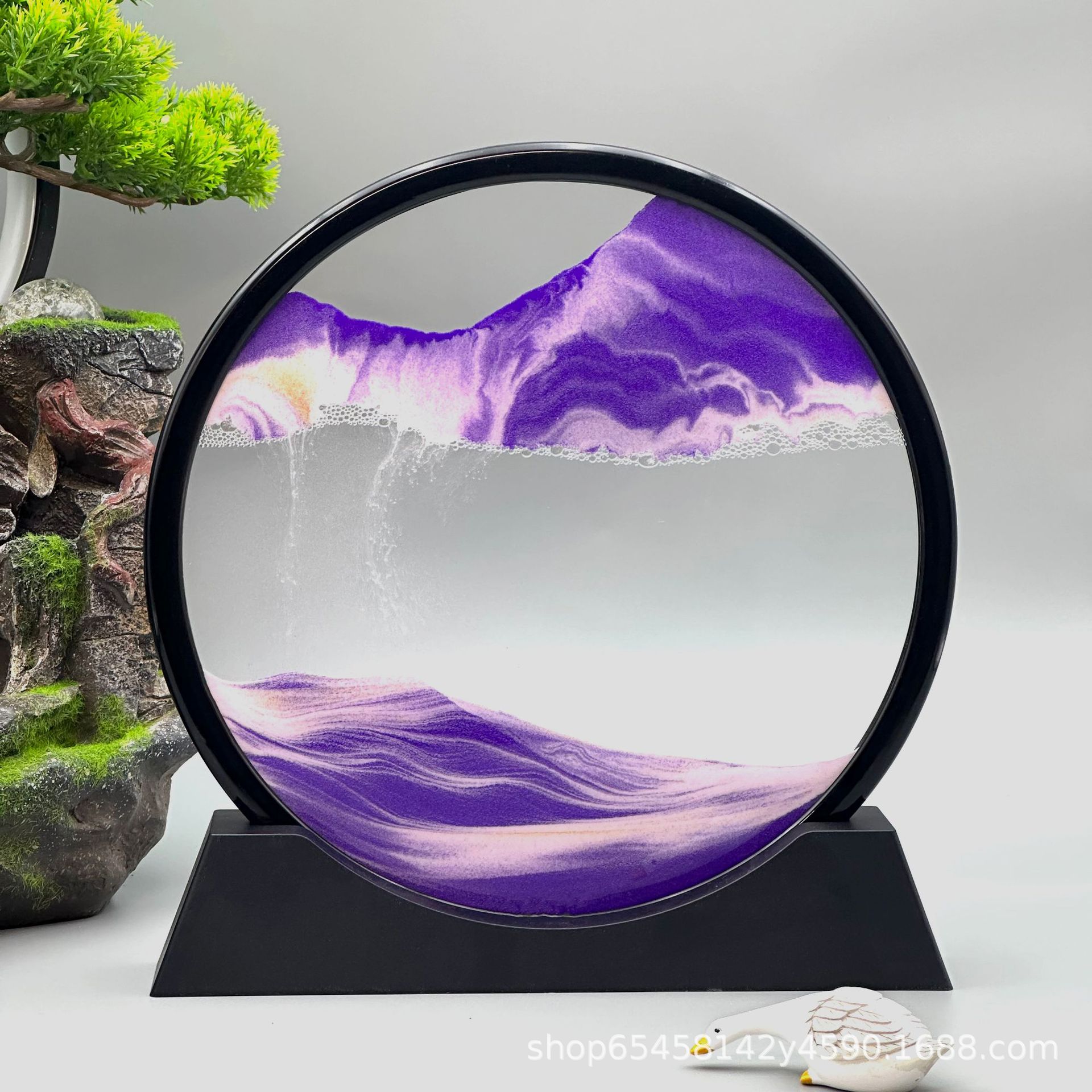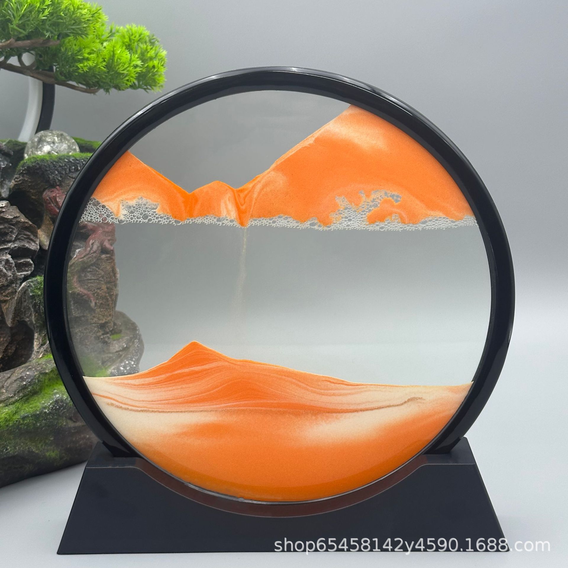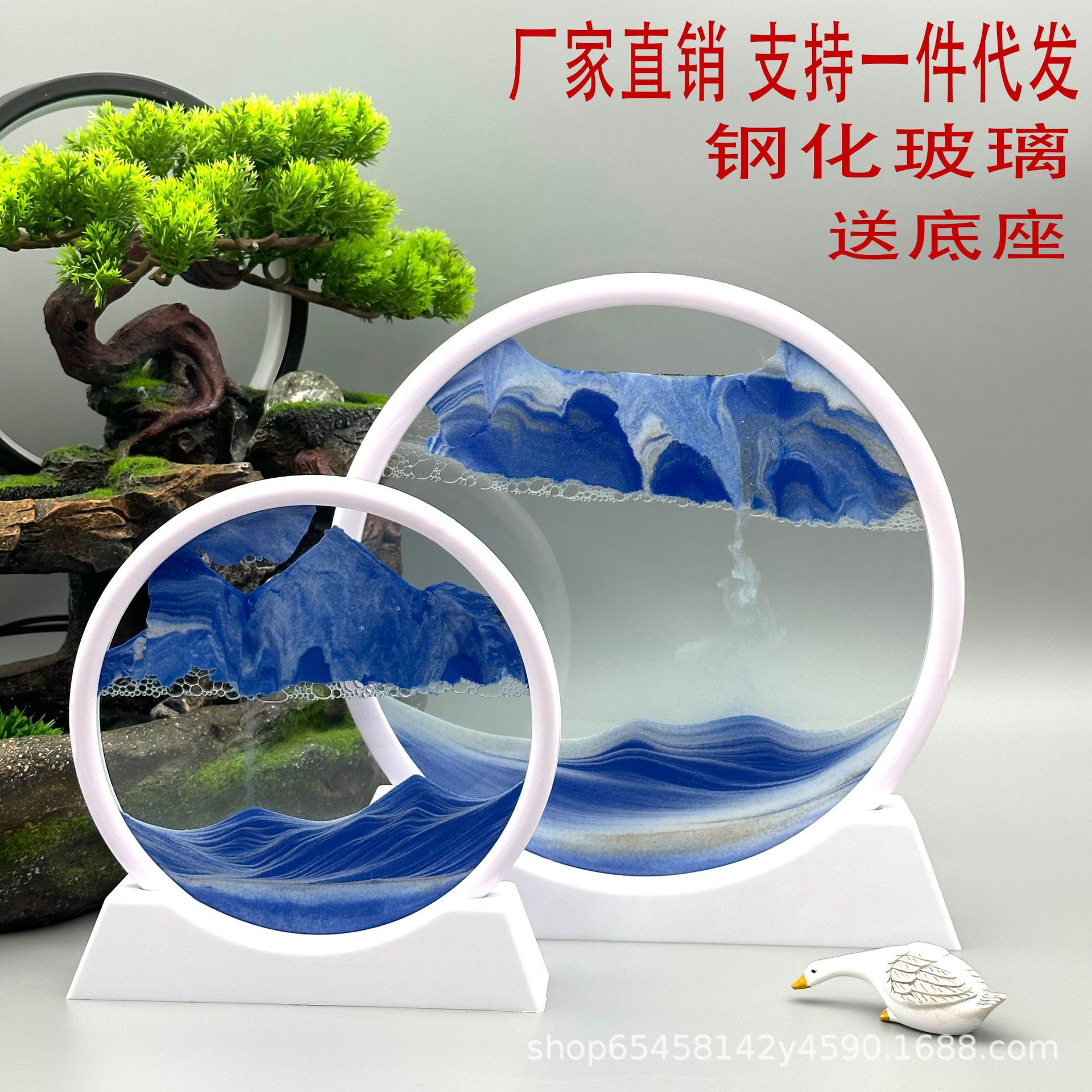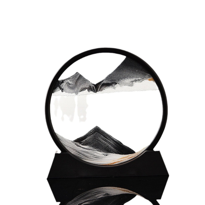 圆流沙画客厅沙漏玻璃摆件毕业礼物跨境新品山水画办公室创意礼品 黑色-黑框7寸 钢化玻璃