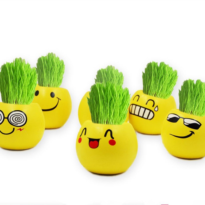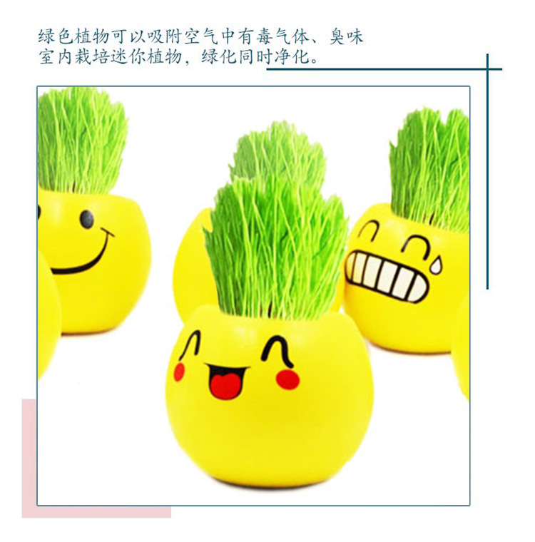 园艺多肉花盆迷你植物盆栽炫酷表情栽培草头娃娃礼品绿色青草种植 袋子装耍酷(草种子+营养土)