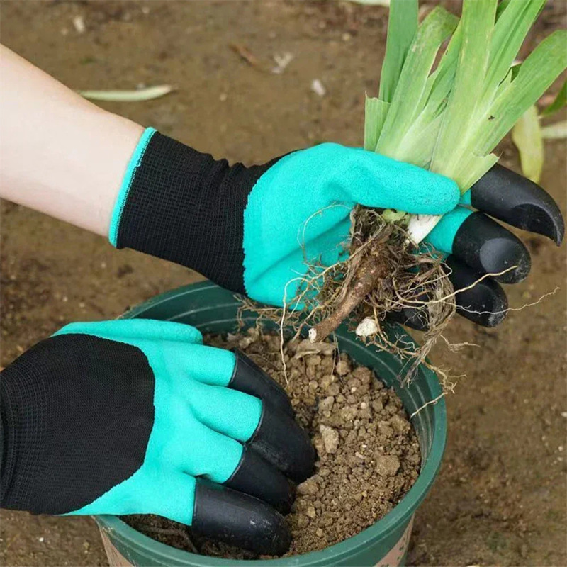 园林爪子手套种植种花防刺防水拔草乳胶挖土园艺手套亚马逊爆款 绿色8爪
