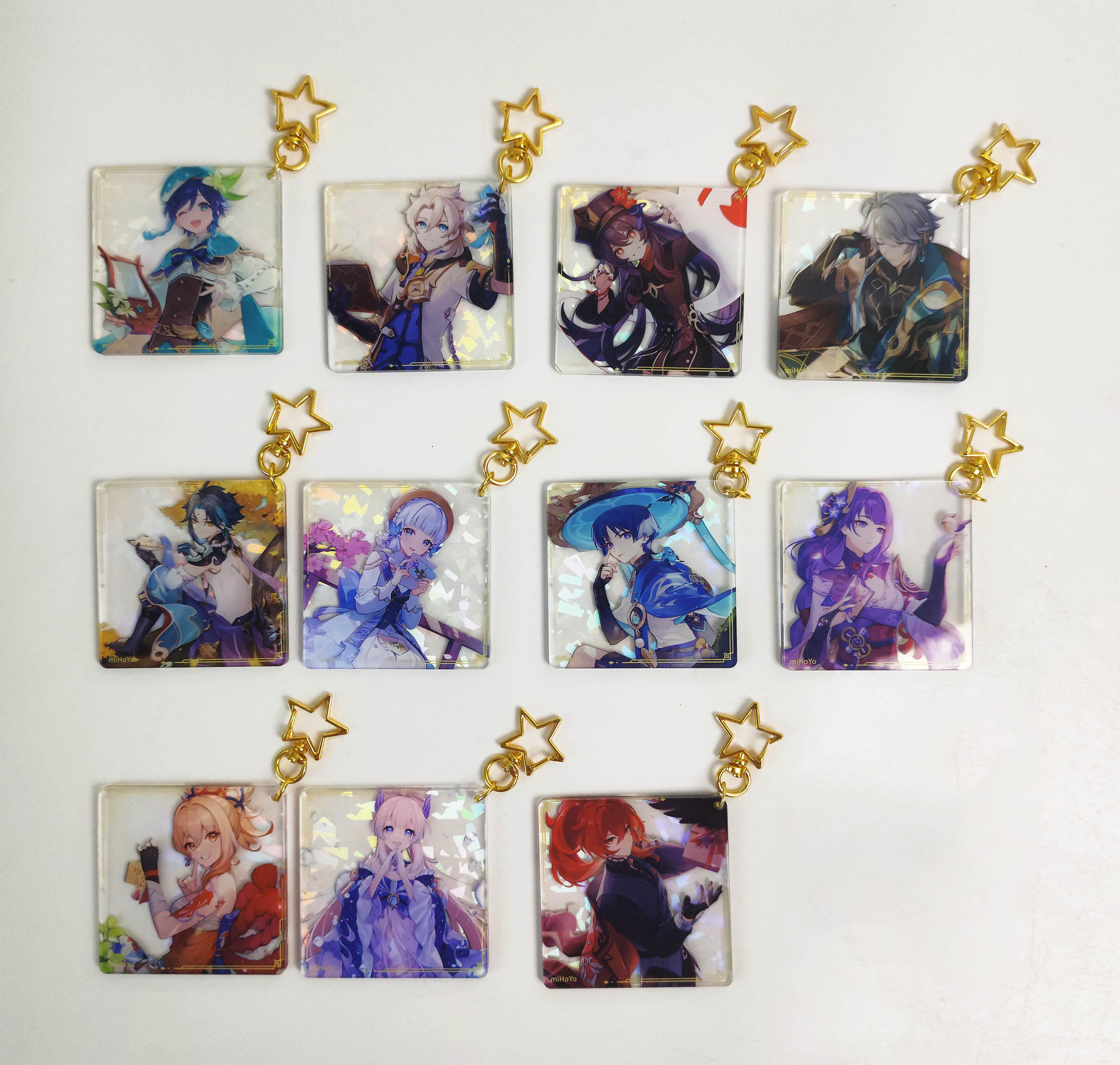 原神Genshin周边 亚克力镭射钥匙扣挂件 提纳里散兵钟离甘雨雷电 阿贝多-镭射玻璃+2.0--粉纸卡包装