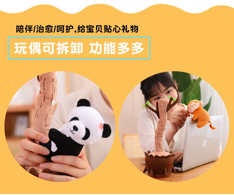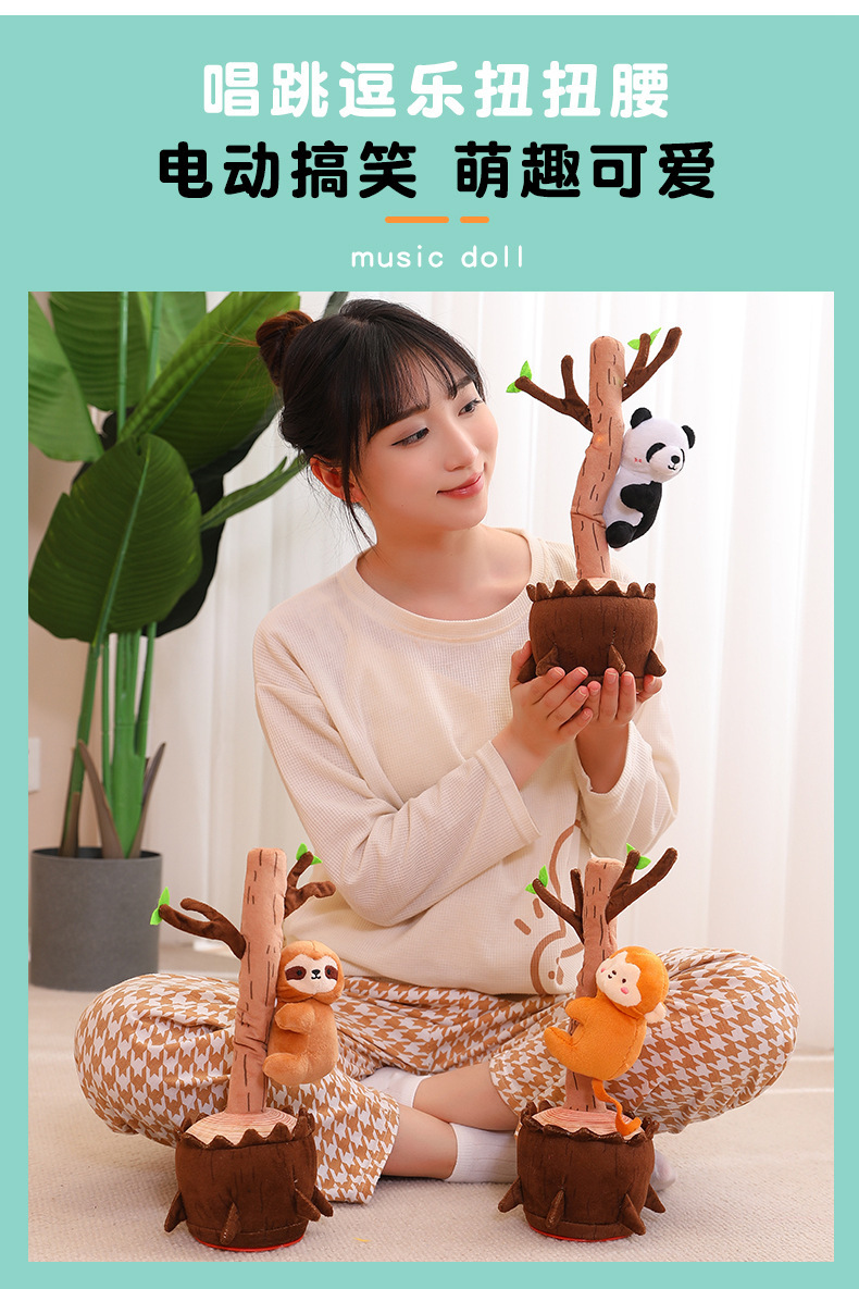 小动物电动爬杆儿童玩具小熊猫企鹅玩偶会唱歌学说话跳舞哄娃神器 树懒-电池款33cm【0.21kg】