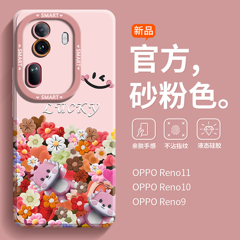 适用OPPOReno11手机壳液态硅胶reno10pro卡通ins风reno9春夏新款8 【砂粉色】硅胶软壳★亲肤不沾指纹-OPPO Reno 11