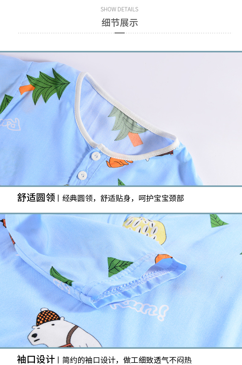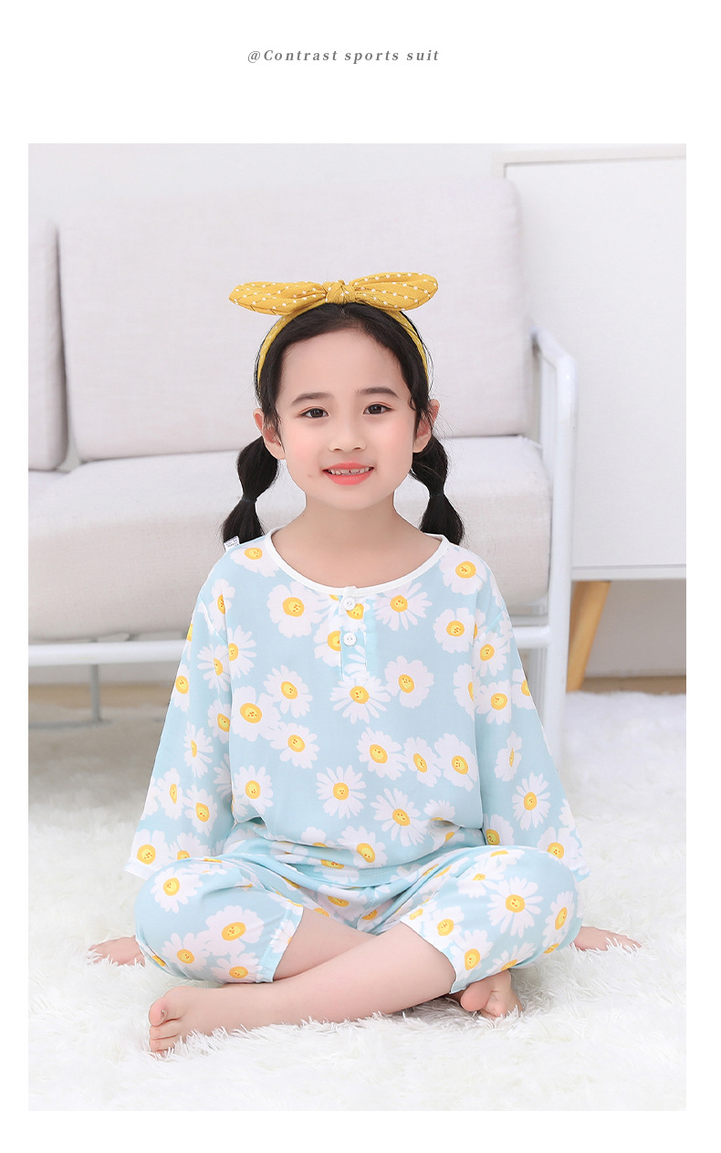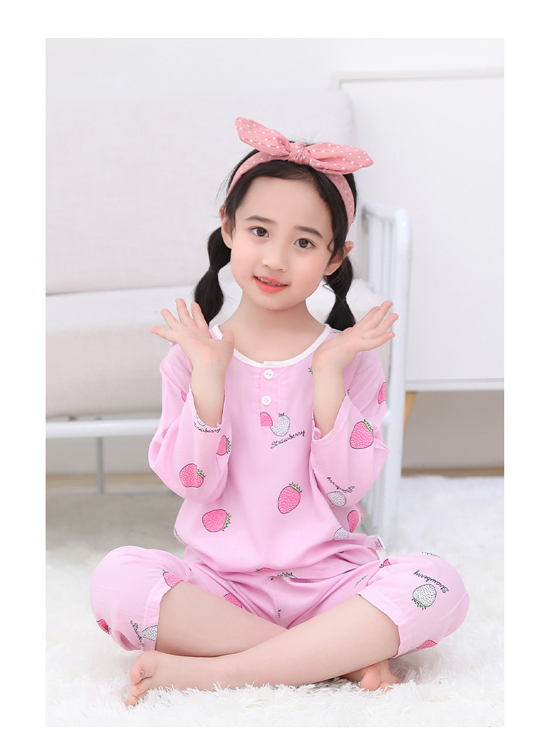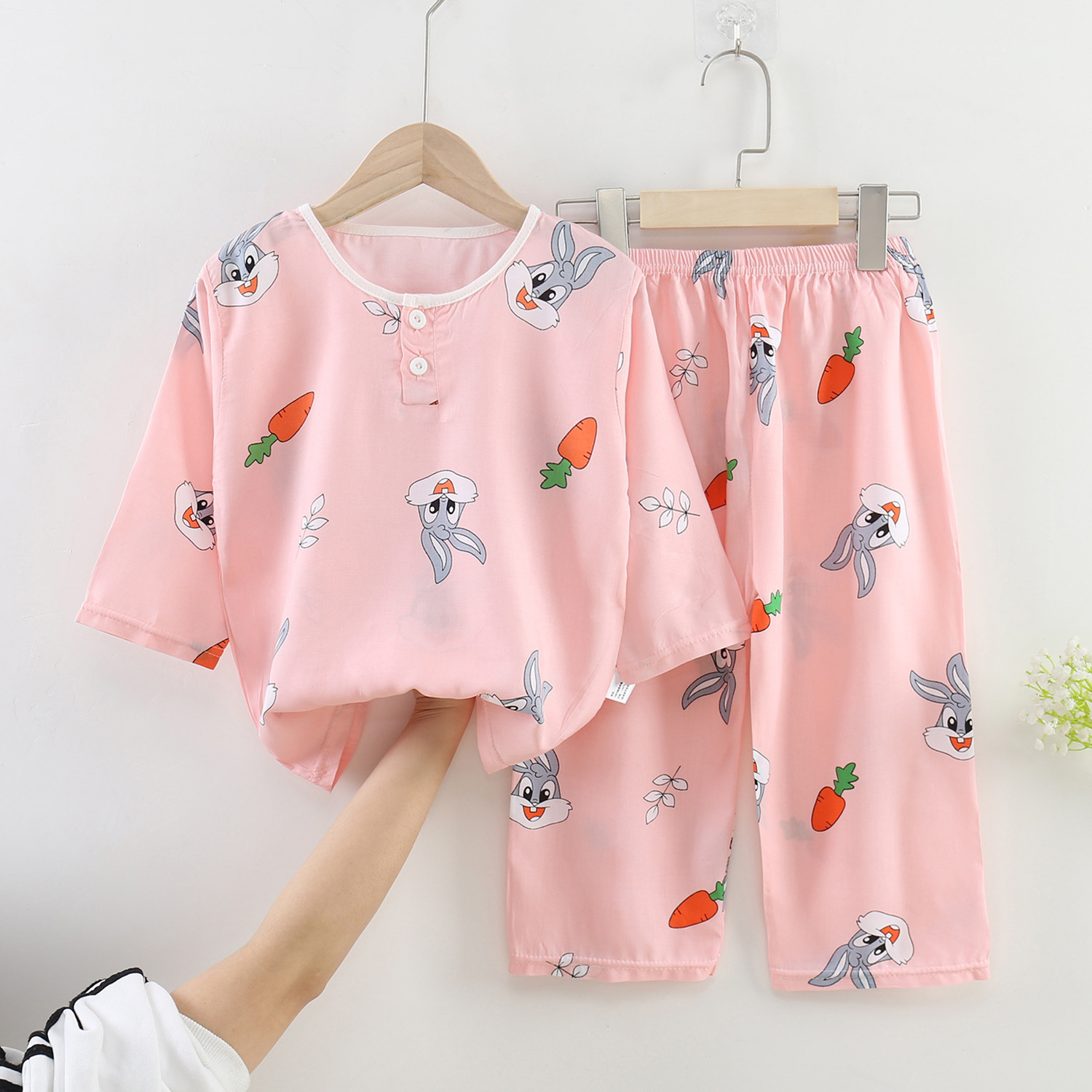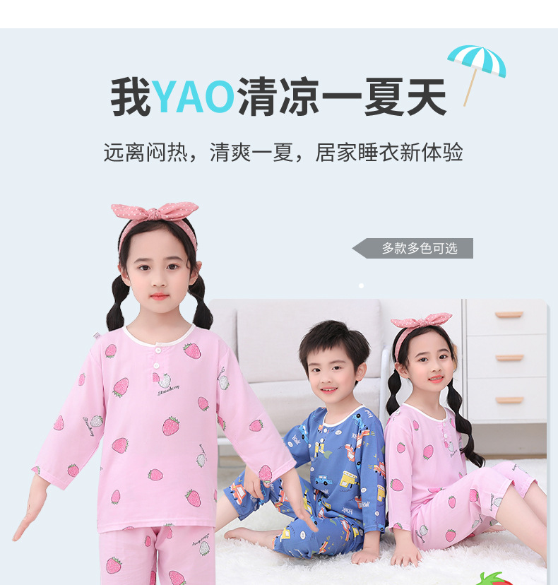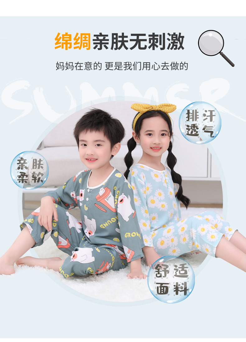 儿童绵绸睡衣套装夏季女童宝宝七分袖家居服男童棉绸夏空调服