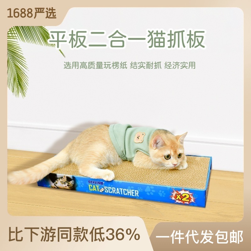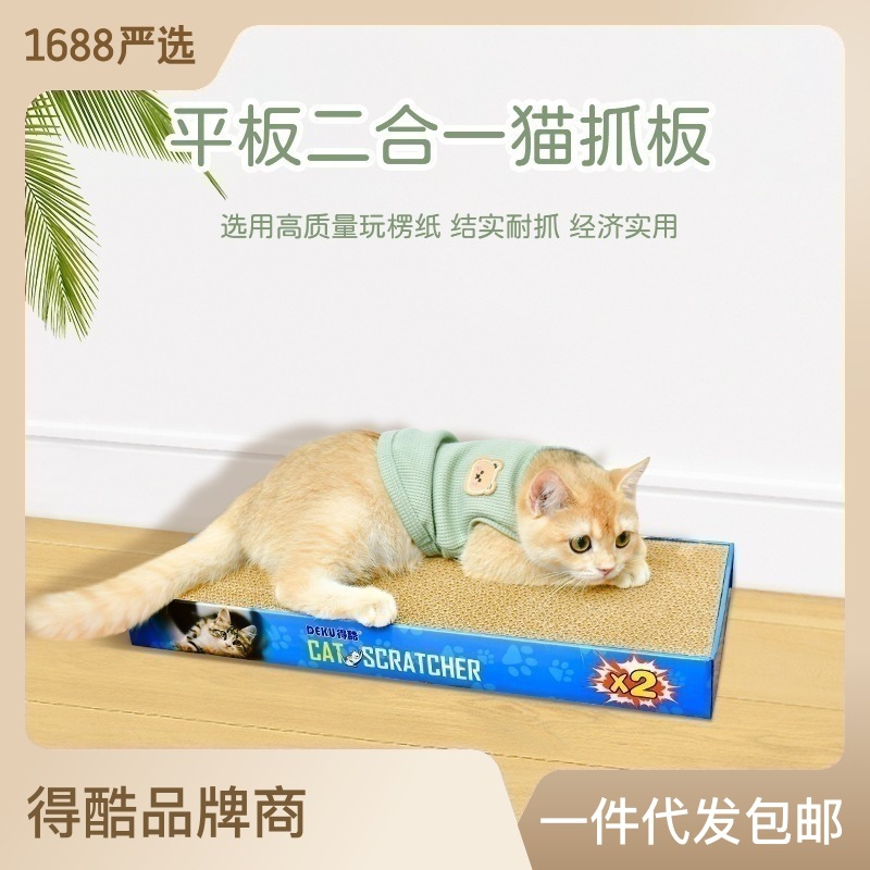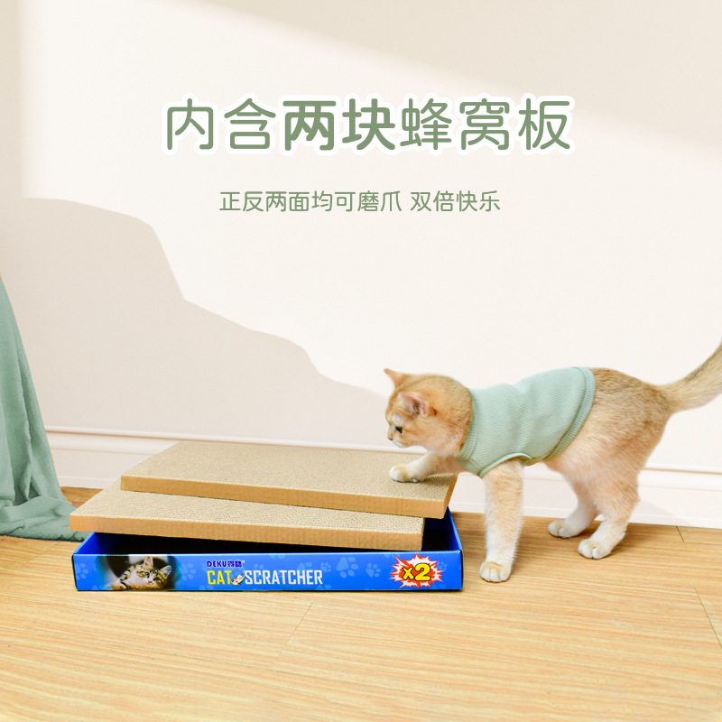 得酷 猫抓板盒装双面二块平板瓦楞纸猫抓板猫磨爪玩具猫咪用品 蓝色平板二合一